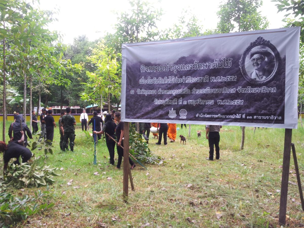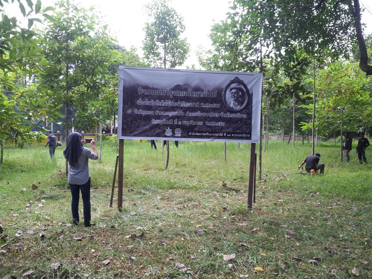 วันพฤหัสบดี ที่ 3 พฤศจิการยน พ.ศ.2559 สำนักจัดการทรัพยากรป่าไม้ที่ 13 สาขานราธิวาส ร่วมทำกิจกรรมบำรุงและรักษาต้นไม้ เนื่องในวันรักต้นไม้ประจำปีของชาติ พ.ศ.2559 ณ วัดพิกุลทอง ตำบลกะลุวอเหนือ อำเภอเมือง จังหวัดนราธิวาส