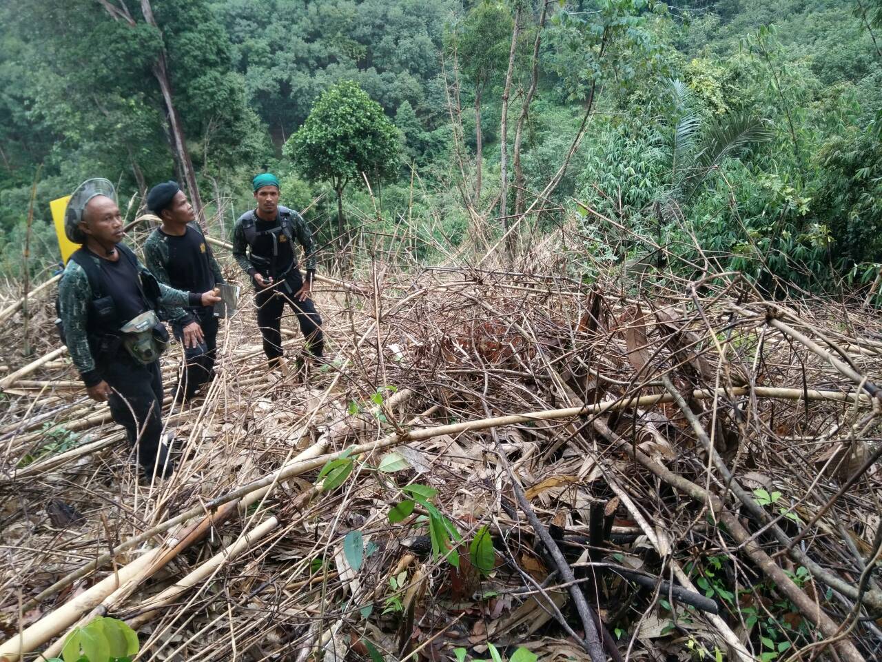 วันนี้(๒๕ ม.ค.๖๐)เวลา ๐๗.๐๐ น.ถึงเวลา ๑๔.๐๐ น. เจ้าหน้าที่หน่วยฯยล.๒(ปะแต)ร่วมกับ จนท.กก.๖บก.ปทส.จ.ยะลา และ จนท.อส.ทพ.ที่ ๔๗๑๐ ร่วมออกลาดตระเวนตรวจสอบพื้นที่ป่าตามแผนโครงการเพิ่มประสิทธิภาพด้านการป้องกันปราบปรามการบุกรุกทำลายทรัพยากรธรรมชาติ กอ.รมน.จว.ยะลา และตามผลการบินเมื่อวันที่ ๒๒ ม.ค. ๖๐ ผลการตรวจสอบ พบพื้นป่าถูกบุกรุกแผ้วถางจำนวน ๑ จุด ในเขตป่าสงวนแห่งชาติป่าลาบูและป่าถ้ำทะลุ ท้องที่บ้านจาเราะรามัย หมู่ที่๑ ต.ปะแต อ.ยะหา จ.ยะลา ที่พิกัด ๔๗ N ๗๓๑๒๕๗ E ๗๐๒๒๘๖ N เนื้อที่ ๓-๒-๐๘ ไร่ รายละเอียดเพิ่มเติมจะแจ้งให้ทราบภายหลัง