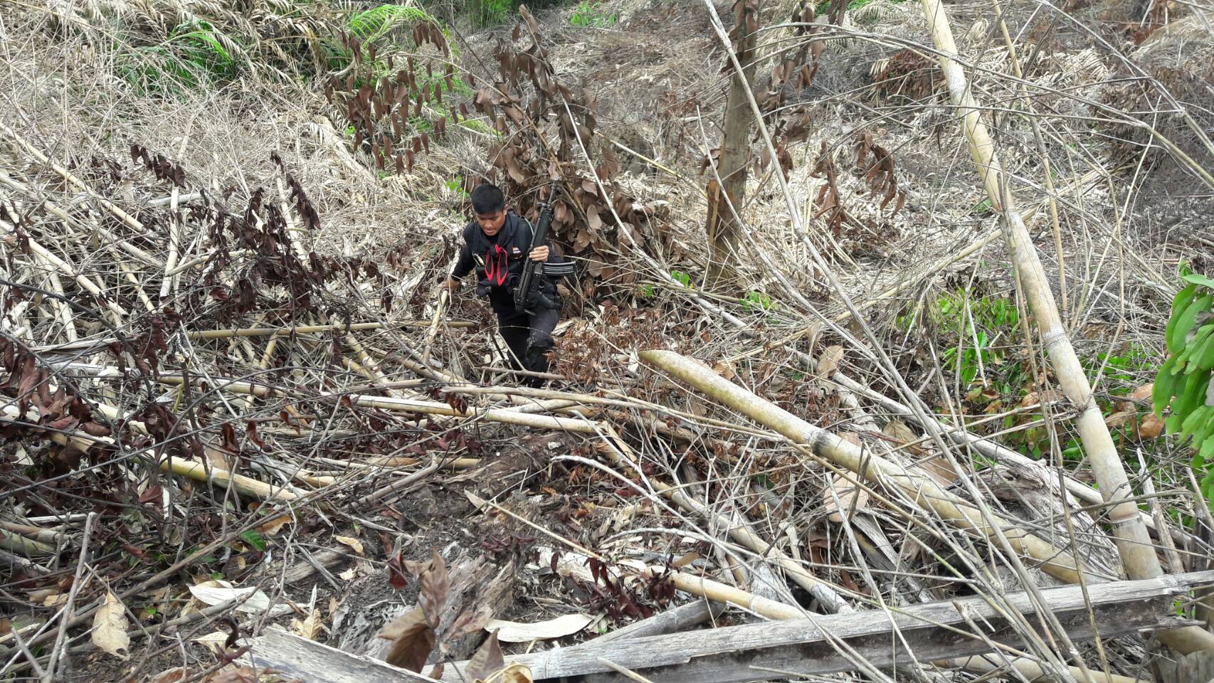 วันที่ ๒๗ มกราคม ๒๕๖๐ เวลา ๐๘.๓๐ น.-๑๗.๐๐ น.หน่วยป้องกันรักษาป่าที่ ยล.๑(กาบัง) ร่วมกับ เจ้าหน้าที่ ฉก.ตชด.44,เจ้าหน้าที่ กขภ.สขว.กอ.รมน.ภาค ๔ สน.,เจ้าหน้าที่.กก.๖ .บก.ปทส.จ.ยะลา , เจ้าหน้าที่กองร้อยทหารพรานที่ ๔๗๐๙,และ เจ้าหน้าที่ฝ่ายปกครองอำเภอกาบัง ได้ร่วมปฏิบัติงานลาดตระเวนตรวจสอบ ตามแผนบินเมื่อวันที่ ๒๒ มกราคม ๒๕๖๐ ตามโครงการเพิ่มประสิทธิภาพด้านป้องกันปราบปรามการบุกรุกและทำลายทรัพยากรธรรมชาติ กองอำนวยการรักษาความมั่นคงภายในจังหวัดยะลาบริเวณพื้นที่เขตป่าสงวนแห่งชาติป่าสกายอกุวิง ท้องที่บ้านยือนัง หมู่ที่ ๔ ต.กาบัง อ.กาบัง จ.ยะลา ผลการตรวจสอบพบพื้นที่ป่าถูกบุกรุกแผ้วถาง จำนวน ๑ แปลง โดยไม่พบตัวผู้กระทำผิดกฎหมายว่าด้วยการป่าไม้ ที่พิกัด ๔๗N ๐๗๒๖๓๔๐ E , ๐๗๑๒๗๗๑ N