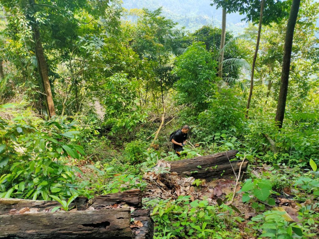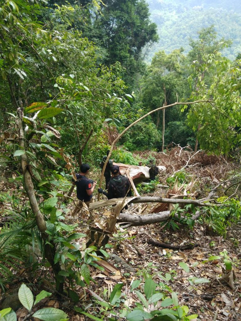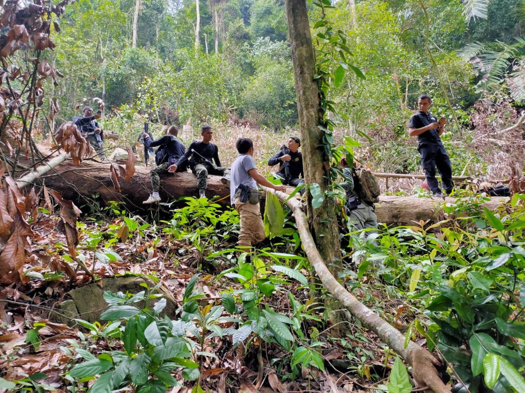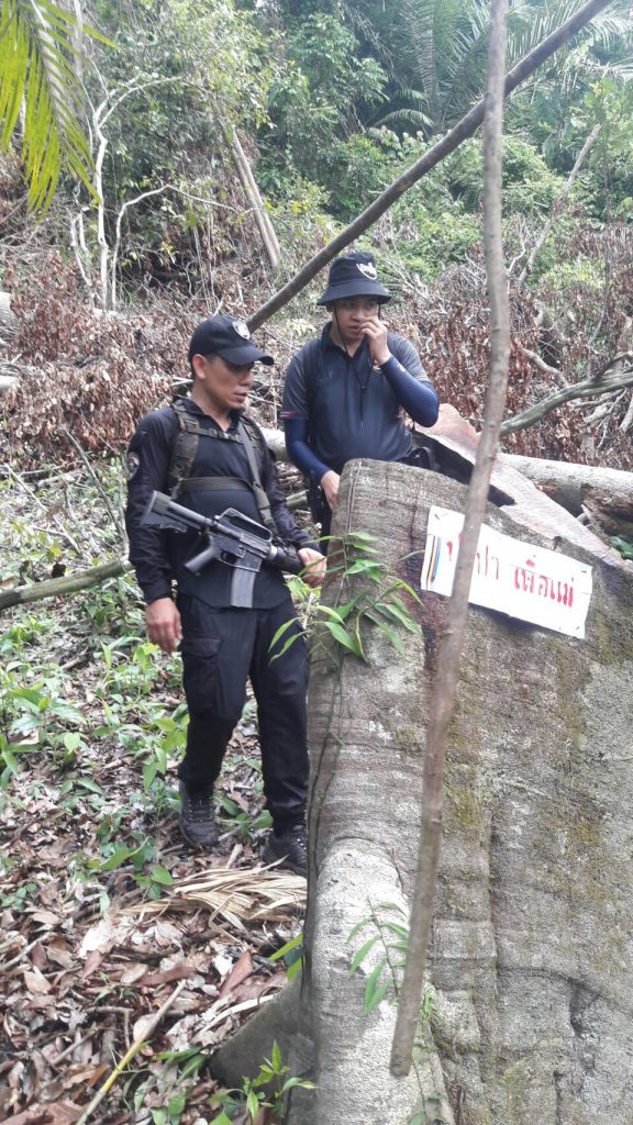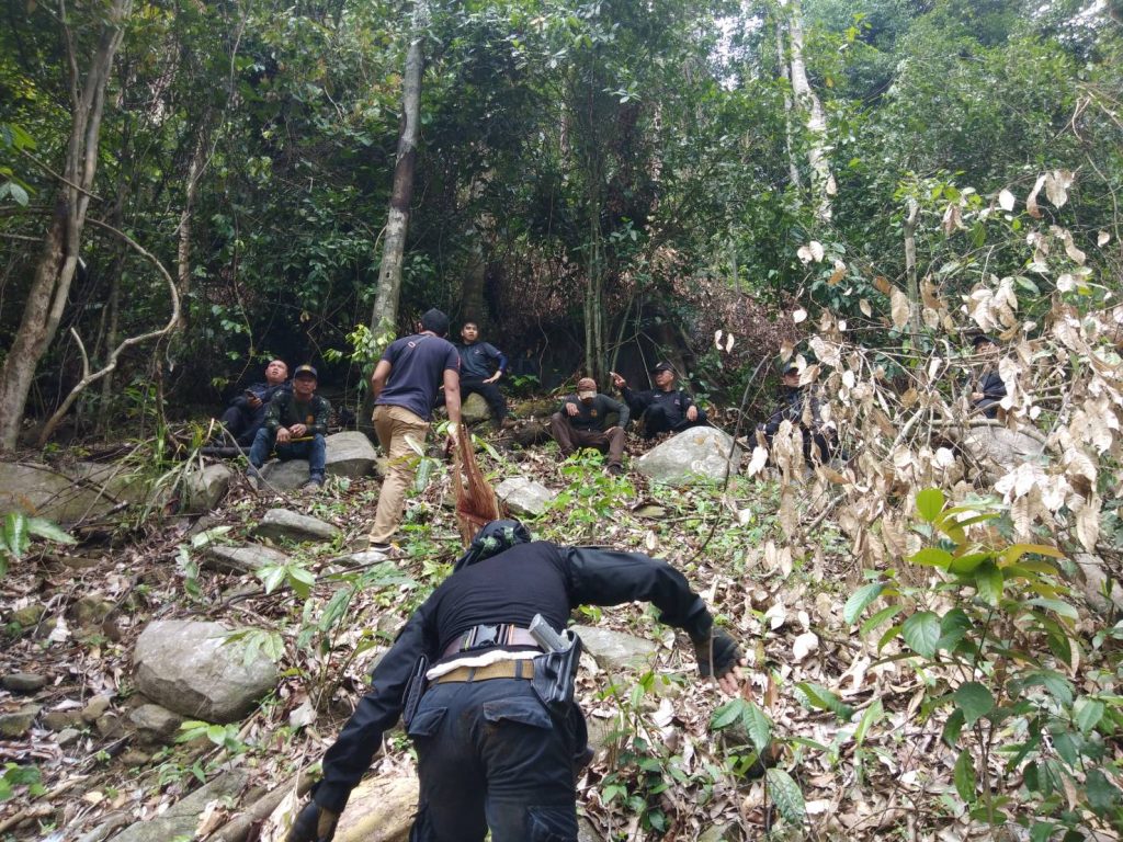 09 สิงหาคม 2563 เวลา 09.00 เป็นต้นไป จนท.หน่วยฯนธ.3 (ระแงะ-จะแนะ) พร้อมด้วย จนท.ชุดปฎิบัติการพิเศษป่าไม้นราธิวาส จนท.ทก.ยว.สขว.กอ.รมน.ภาค 4 สน. จนท.คณะทำงานพิเศษ สขว.กอ.รมน.ภาค 4 สน.จนท.ผบ.ร้อย.ทพ.4507 จนท.ปลัดอำเภองานป้องกันอำเภอระแงะและผญบ.ฮูลู ม.3 ต.กาลิซา อ.ระแงะ จ.นราธิวาส เข้าตรวจสอบพื้นที่บุกรุกแผ้วถางบริเวณป่าโครงการไม้กระยาเลยฝั่งขวาแม่น้ำสายบุรี ท้องที่ บ.ฮูลู ม.3 ต.กาลิซา อ.ระแงะ จ.นราธิวาส