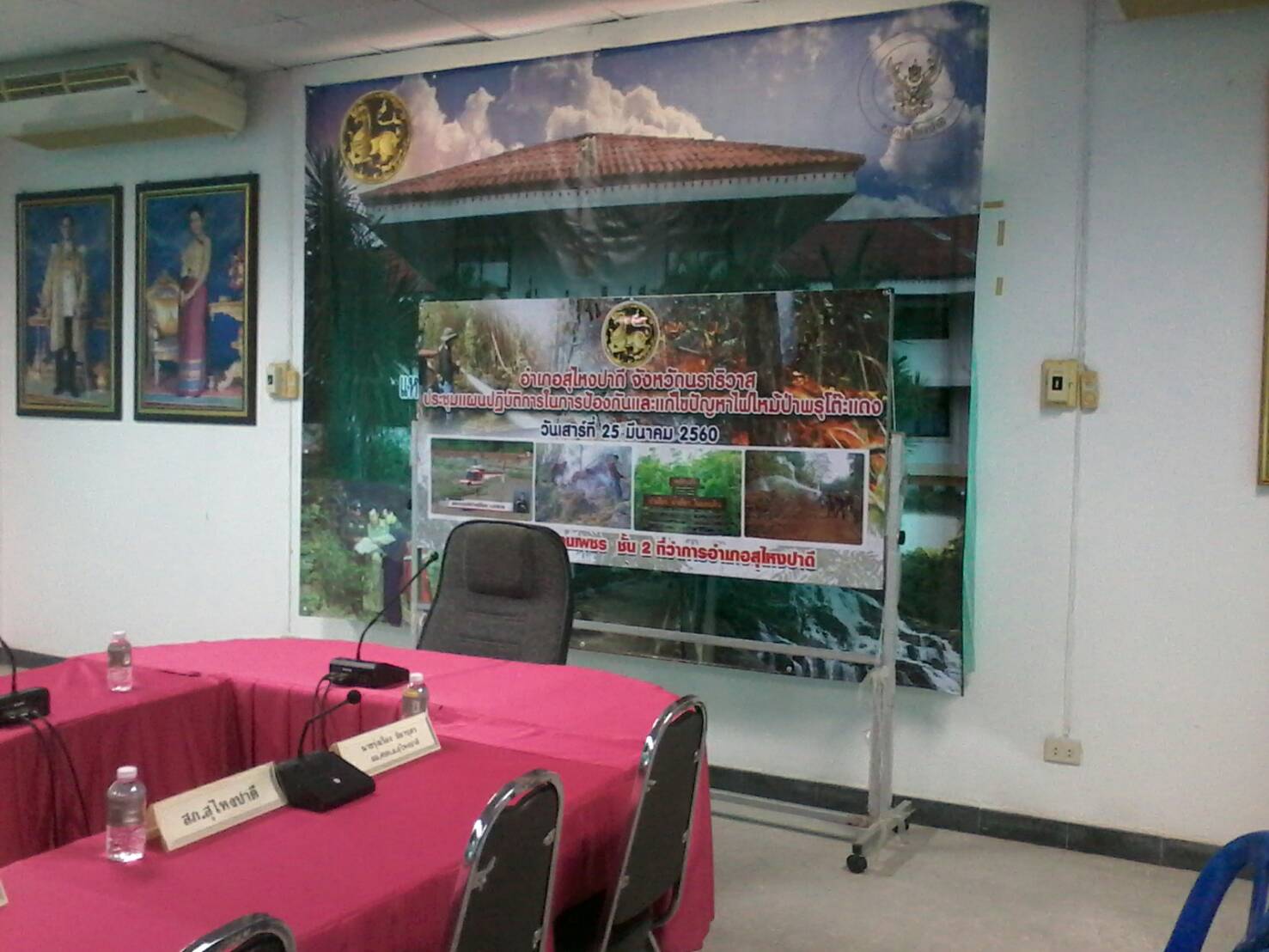 วันนี้ 25/3/60 เวลาประมาณ 09.30 – 11.25 น. เจ้าหน้าท่หน่วย นธ.4 (สุไหงปาดี)เข้าร่ามประชุม แผนปฏิบัติการในการป้องกันและแก้ไขปัญหาไฟไหม้ป่าพรุโต๊ะแดง ณ.ห้องแหวนเพชร ที่ว่าการอ.สุไหงปาดี โดยมีผู้ว่าเนราธิวาสป็นประธาน
