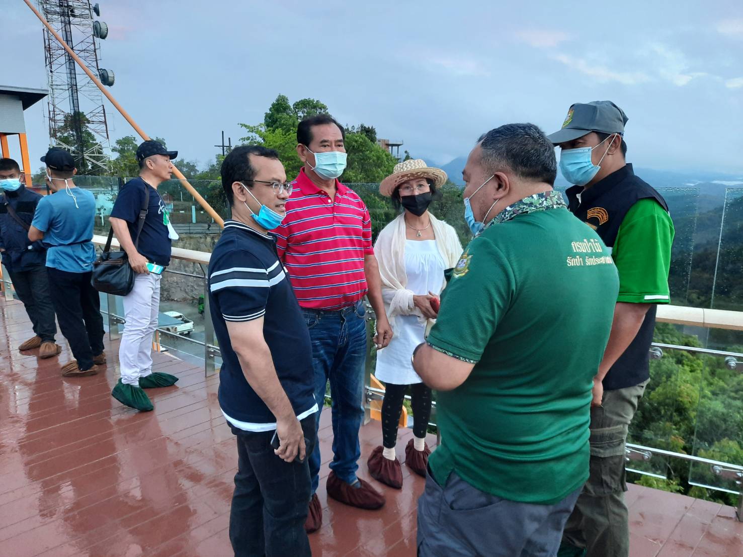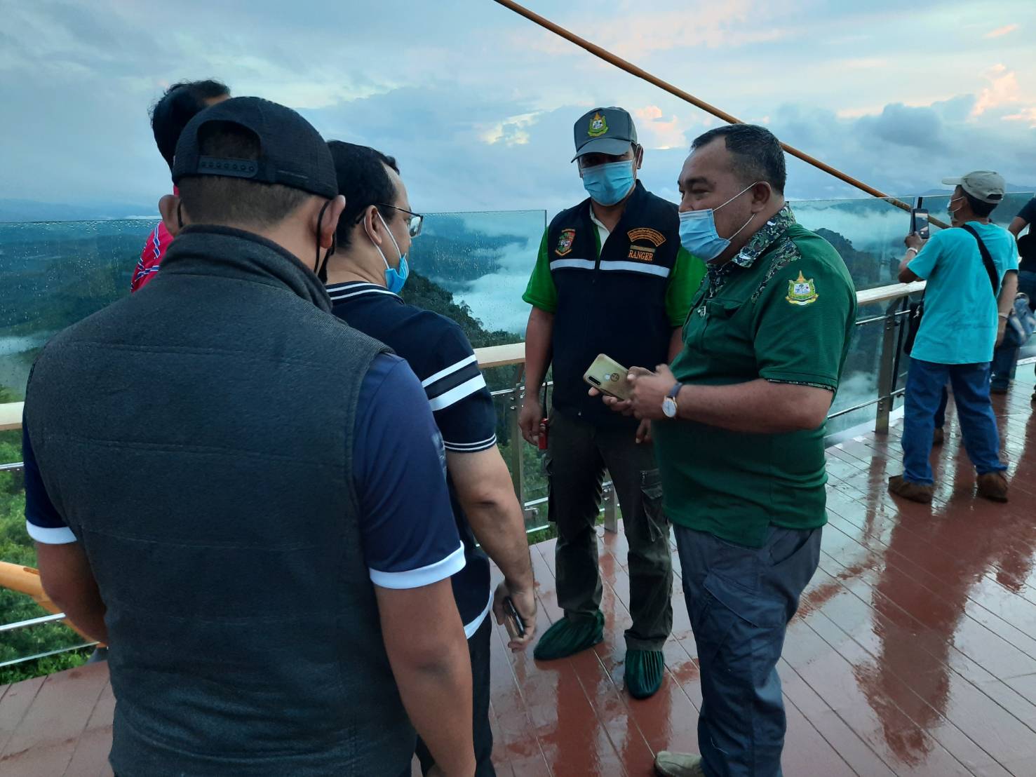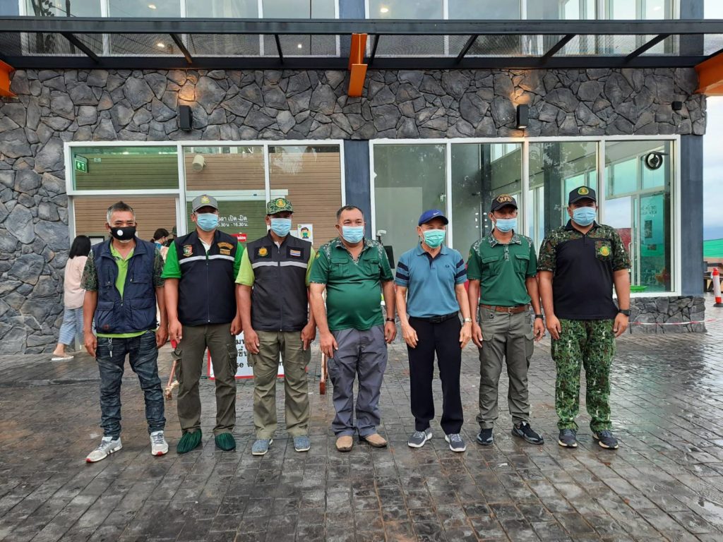 เจ้าหน้าที่หน่วยป้องกันรักษาป่าที่ ยล.4 (บ่อน้ำร้อน-จันทรัตน์) เจ้าหน้าที่โครงการพัฒนาศักยภาพและศึกษาธรรมชาติป่าเบตง (Skywalk), เจ้าหน้าที่จุฬาภรณ์ 7-9, เจ้าหน้าที่ ตชด.4442, เจ้าหน้าที่ตำรวจสภ.อัยเยอร์เวง และเจ้าหน้าที่อสทท.ร่วมกันจัดระเบียบและคัดกรองนักท่องเที่ยว ให้เป็นไปตามมาตรการและมาตรฐานของการควบคุมโรค Covit19 ณ. จุดโครงการพัฒนาแหล่งท่องเที่ยวเชิงนิเวศ