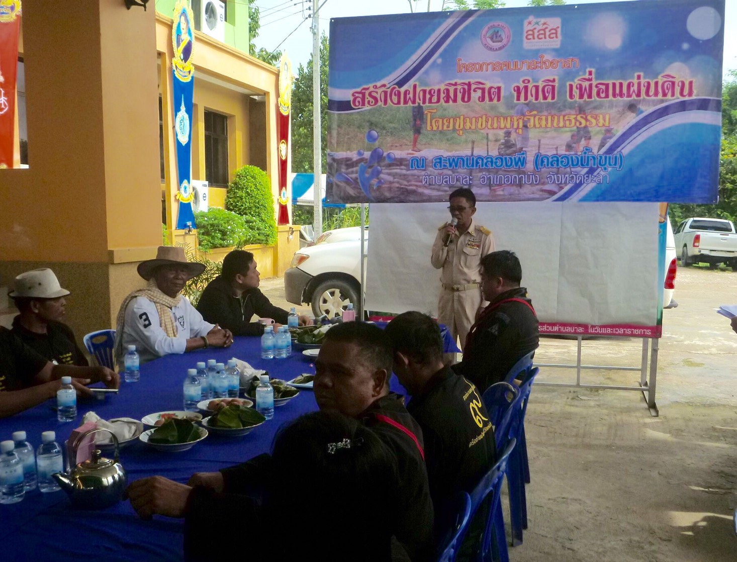 วันนี้(๓ เม.ย.๖๐)เวลา ๐๘.๓๐ น.เจ้าหน้าที่หน่วยฯยล.๑(กาบัง) ร่วมเวทีประชาร่วมใจ และลงเสาเอก สร้างฝายมีชีวิต ทำดี เพื่อแผ่นดิน ชุมชนบ้านบาละ อ.กาบัง จ.ยะลา ร่วมสภากาแฟ กับหัวหน้าส่วนราชการและประชาชนในพื้นที่ อ.กาบัง ณ ที่ทำการองค์การบริหารส่วนตำบบาละ หมู่ ๙ และ ณ สะพานคลองพี (คลองน้ำขุน) ต.บาละ อ.กาบัง จ.ยะลา