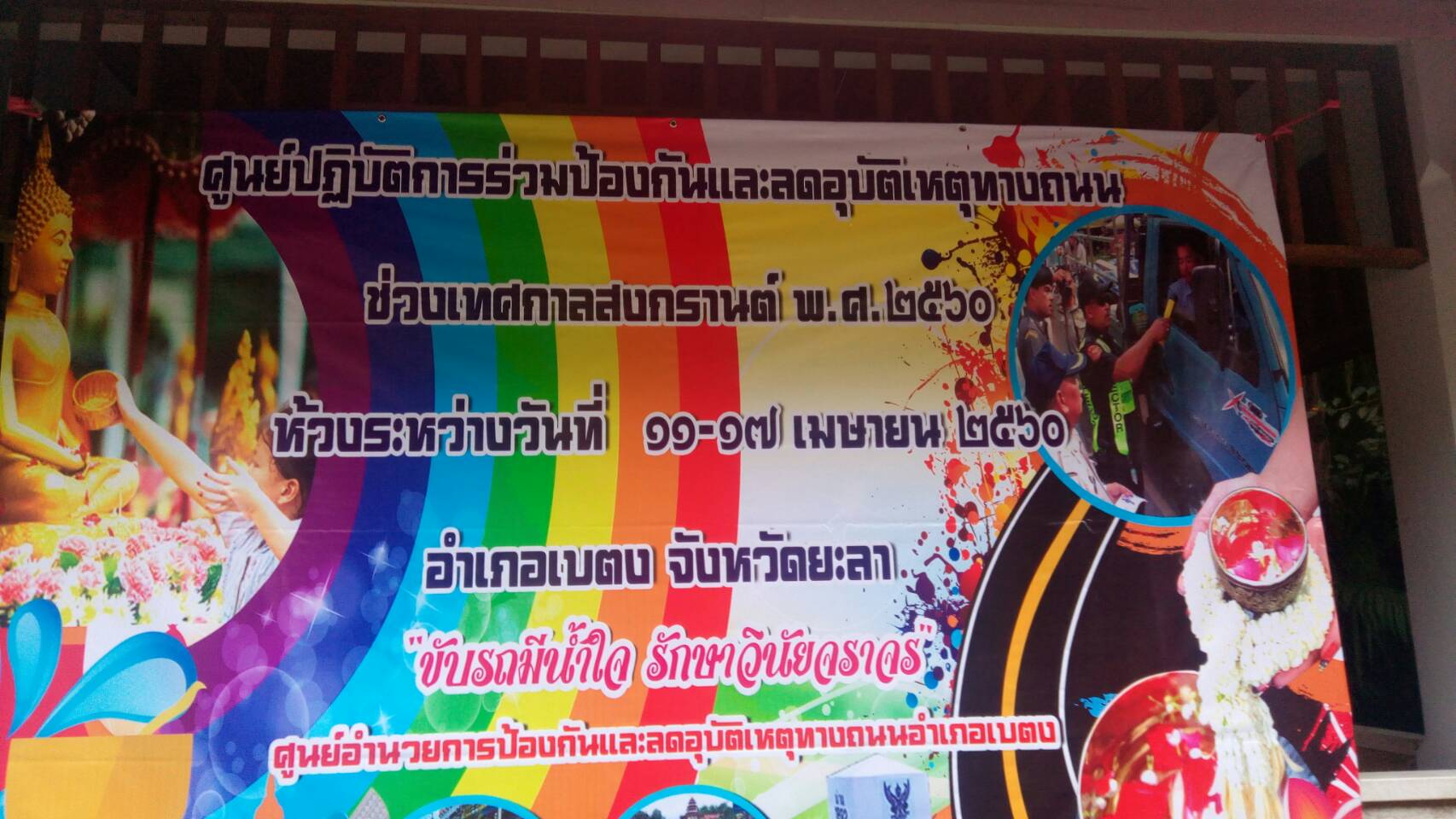 วันนี้ (11/4/60 ) เวลา 08.30 น. เจ้าหน้าที่หน่วย ยล 6 (บ่อน้ำร้อน ) ได้ร่วมกับศูนย์ปฏิบัติการร่วมป้องกันและลดอุบัติเหตุทางถนน ช่วงเทศกาลสงกรานต์ พ.ศ.2560 ห้วงระหว่างวันที่ 11-17 เม.ย.60 อ.เบตง จ.ยะลา โดยมี นายอำเภอเบตงเป็นประธาน