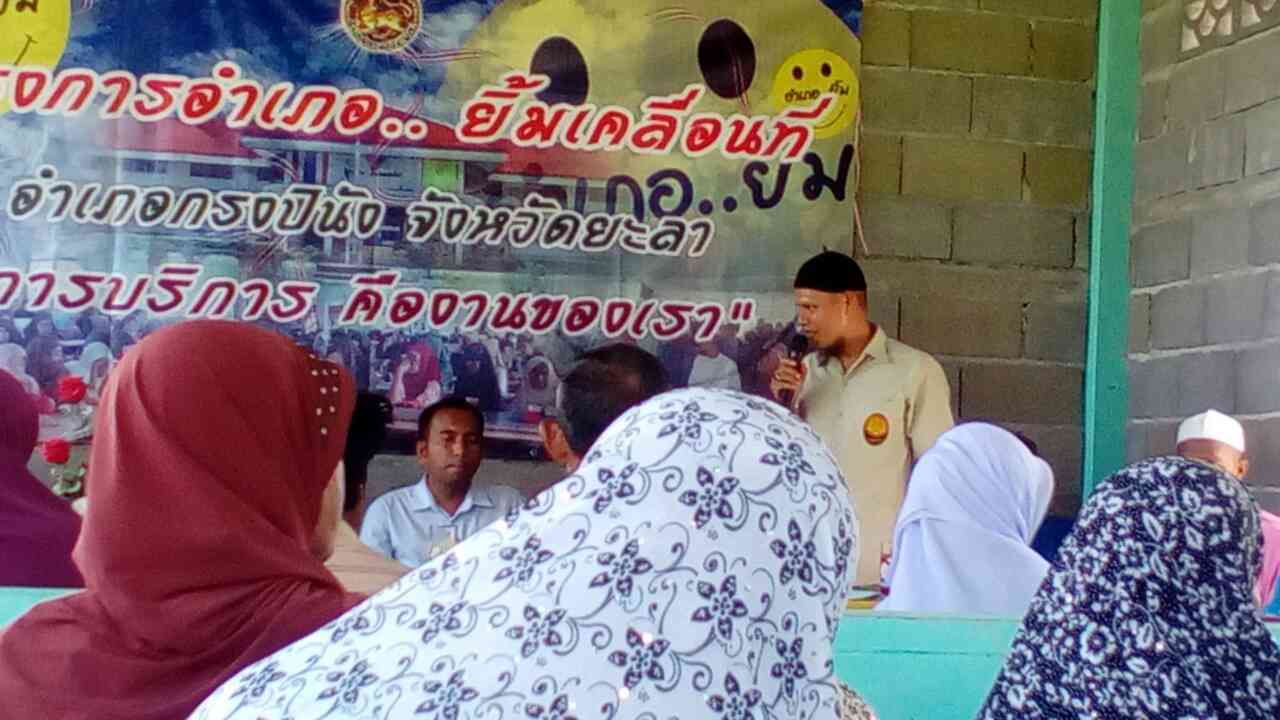 วันนี้วันที่ ๒๗ เมษายน ๒๕๖๐ เวลา ๑๓.๓๐ น. เจ้าหน้าที่หน่วยฯยล.๓ (ลำพะยา) เข้าร่วมโครงการอำเภอยิ้มเคลือนที ณ มัสยิดยันนาตุลมะวา บ้านตะโละซูแม ม.๒ ตำบลกรงปินัง อำเภอกรงปินัง จังหวัดยะลา โดยมีนายกริช. น้อยผา นายอำเภอกรงปินัง เป็นประธาน