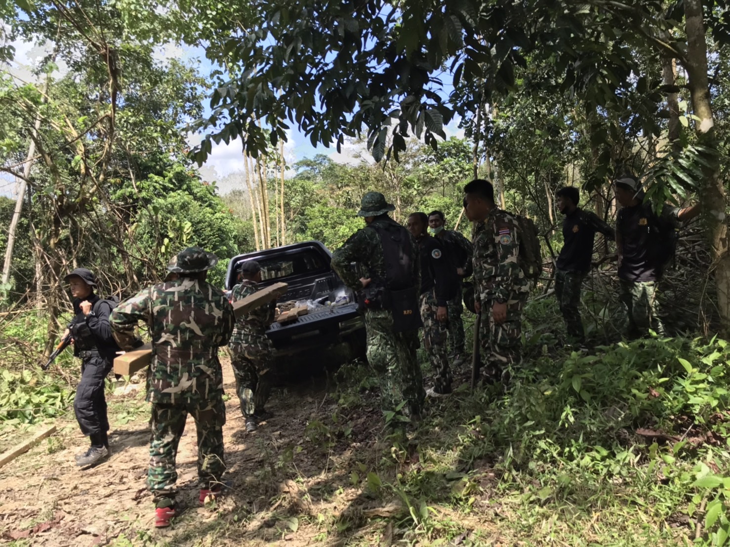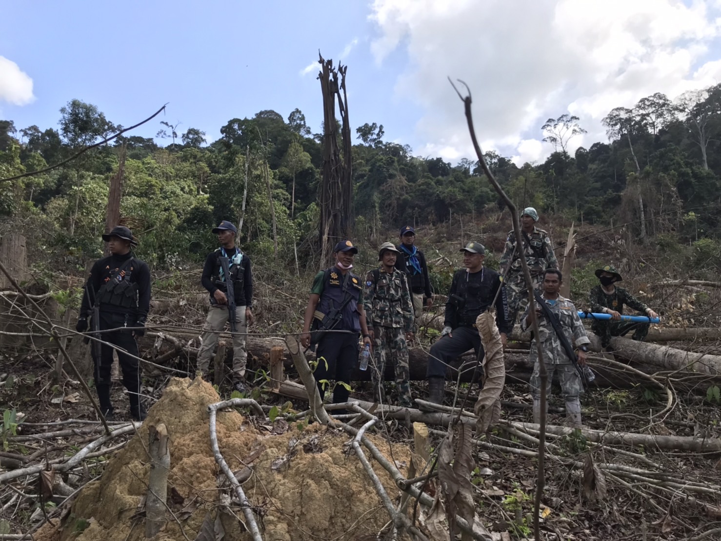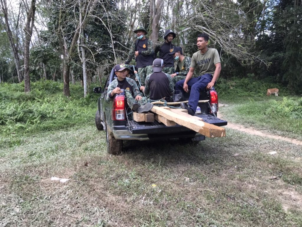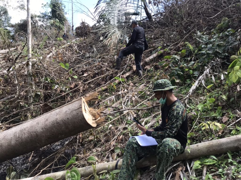 ท้องที่บ้านไอร์กือเดร์ หมู่ที่ ๔ ตำบลศรีบรรพต อำเภอศรีสาคร จังหวัดนราธิวาส คณะเจ้าหน้าที่ได้ตรวจพบพื้นที่ป่าถูกบุกรุกแผ้วถาง จำนวน ๑ จุด ที่พิกัด UTM ๔๗ N ๗๘๕๐๕๗ E, ๖๗๙๐๓๖ N และตรวจยึดไม้ตะเคียนชันตาแมวแปรรูป จำนวน ๑๓ ชิ้น/แผ่น ปริมาตร ๐.๒๑ ลูกบาศก์เมตร ที่พิกัด UTM ๔๗ N ๗๘๕๒๐๐ E,๖๗๘๗๖๗ รายละเอียดจะรายงานให้ทราบต่อไป