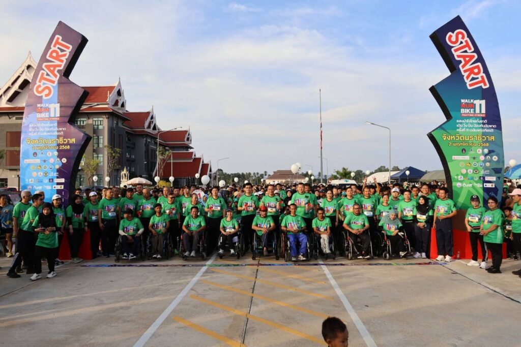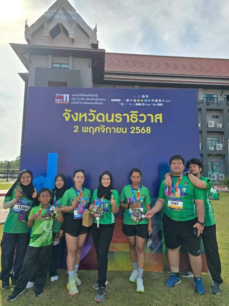 วันจันทร์ที่ 2 พฤศจิกายน 2568 ข้าราชการ พนักงานราชการ และเจ้าหน้าที่ในสังกัดสำนักจัดการทรัพยากรป่าไม้ที่ 13 สาขานราธิวาส เข้าร่วมกิจกรรมแสงนำใจไทยทั้งชาติ เดิน วิ่ง ปั่น ป้องกันอัมพาต ครั้งที่ 11 เฉลิมพระเกียรติ โดยมีวัตถุประสงค์เพื่อเฉลิมพระเกียรติพระบาทสมเด็จพระเจ้าอยู่หัว และสมเด็จพระนางเจ้าฯ พระบรมราชินี ที่ทรงเป็นดั่งแสงนำใจของประชาชนไทย และทรงเป็นแบบอย่างแก่ประชาชนชาวไทยในการรักษาสุขภาพ และการออกกำลังกาย ทรงมีพระเมตตาแผ่ไพศาลแก่พสกนิกรชาวไทยอย่างไม่เลือกชั้นวรรณะ และเชื้อชาติ พระราชทานรถต้นแบบรถรักษาอัมพาตเคลื่อนที่สำหรับนำไปใช้ประโยชน์ในพื้นที่ห่างไกล และเป็นรากฐานในการให้บริการไปทั่วประเทศดังประจักษ์ชัด เพื่อให้ประชาชนชาวไทยทั่วประเทศ ตระหนักถึงความสำคัญของการป้องกันโรคหลอดเลือดสมอง ผ่านการให้ความรู้โรคหลอดเลือดสมองแบบเชิงรุกในพื้นที่ห่างไกลทั่วประเทศ เพื่อรณรงค์เชิญชวนประชาชนทุกเพศ ทุกวัย ได้ออกกำลังกายอย่างง่ายๆ เช่น การเดิน วิ่ง หรือปั่นจักรยาน ซึ่งหากออกกำลังกายติดต่อกันเป็นประจำ จะทำให้มีสุขภาพแข็งแรง ห่างไกลจากโรค และช่วยลดค่าใช้จ่ายการรักษา ตลอดจนลดภาระของปัญหาโรคเรื้อรังได้