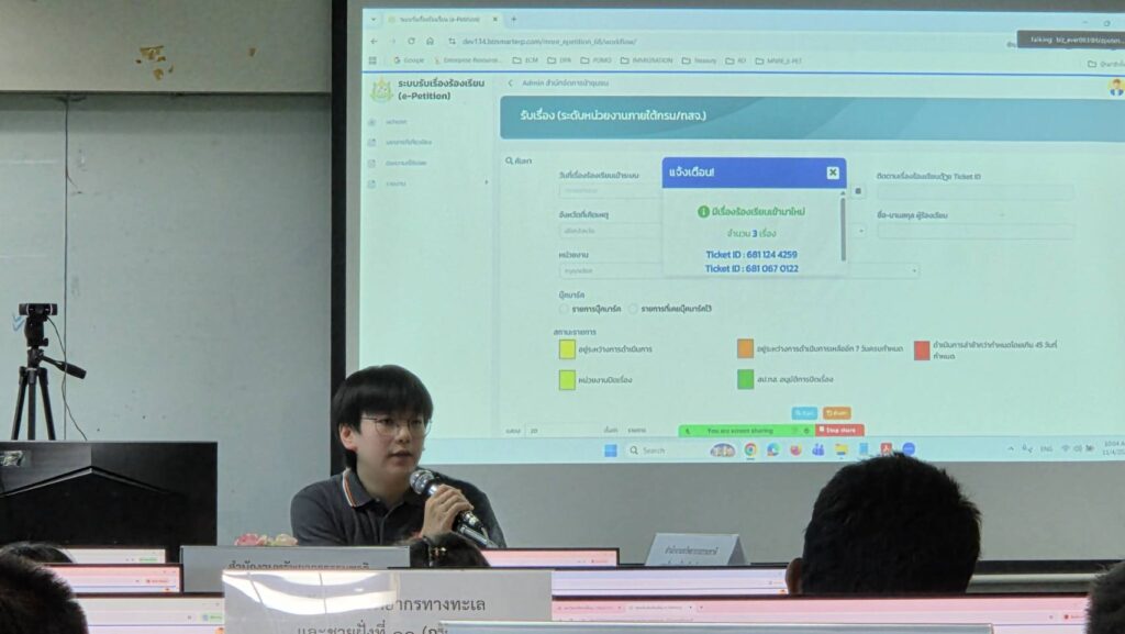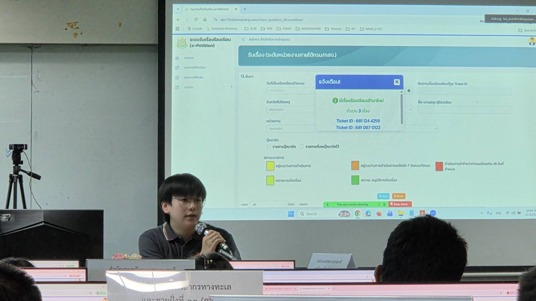 วันอังคารที่ 4 พฤศจิกายน 2568 นายกิตติพันธุ์ รัตนวงค์ เจ้าพนักงานป่าไม้ชำนาญงาน รักษาการในตำแหน่งผู้อำนวนการสำนักจัดการทรัพยากรป่าไม้ที่ 13 สาขานราธิวาส มอบหมายให้นางสาวเพ็ญสิริ เพ็ญกุล นักจัดการงานทั่วไปปฏิบัติการ และนายรัฐศักดิ์ อ้องหว่าง นักจัดการงานทั่วไป เข้าร่วมฝึกอบรมการใช้ระบบรับเรื่องร้องเรียน (e-Petition) ที่พัฒนาขึ้นใหม่ สำหรับผู้ใช้งานระบบในพื้นที่ของหน่วยงานระดับกรม ในพื้นที่ภาคใต้ ณ มหาวิทยาลัยหาดใหญ่ จังหวัดสงขลา เพื่อรองรับการดำเนินการเรื่องร้องเรียนได้อย่างมีประสิทธิภาพ เหมาะสมกับสภาพการณ์ของสังคมในปัจจุบัน รวมทั้งระบบดังกล่าวสามารถประมวลผลข้อมูลได้หลากหลายรูปแบบด้วยความรวดเร็ว ซึ่งจะช่วยยกระดับการให้บริการภาครัฐให้มีความทันสมัยและสอดคล้องกับนโยบายการขับเคลื่อนไปสู่รัฐบาลดิจิทัลตามนโยบายของรัฐบาลมากยิ่งขึ้นต่อไป