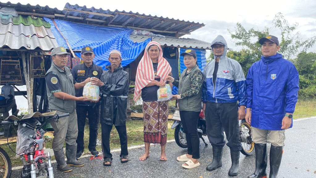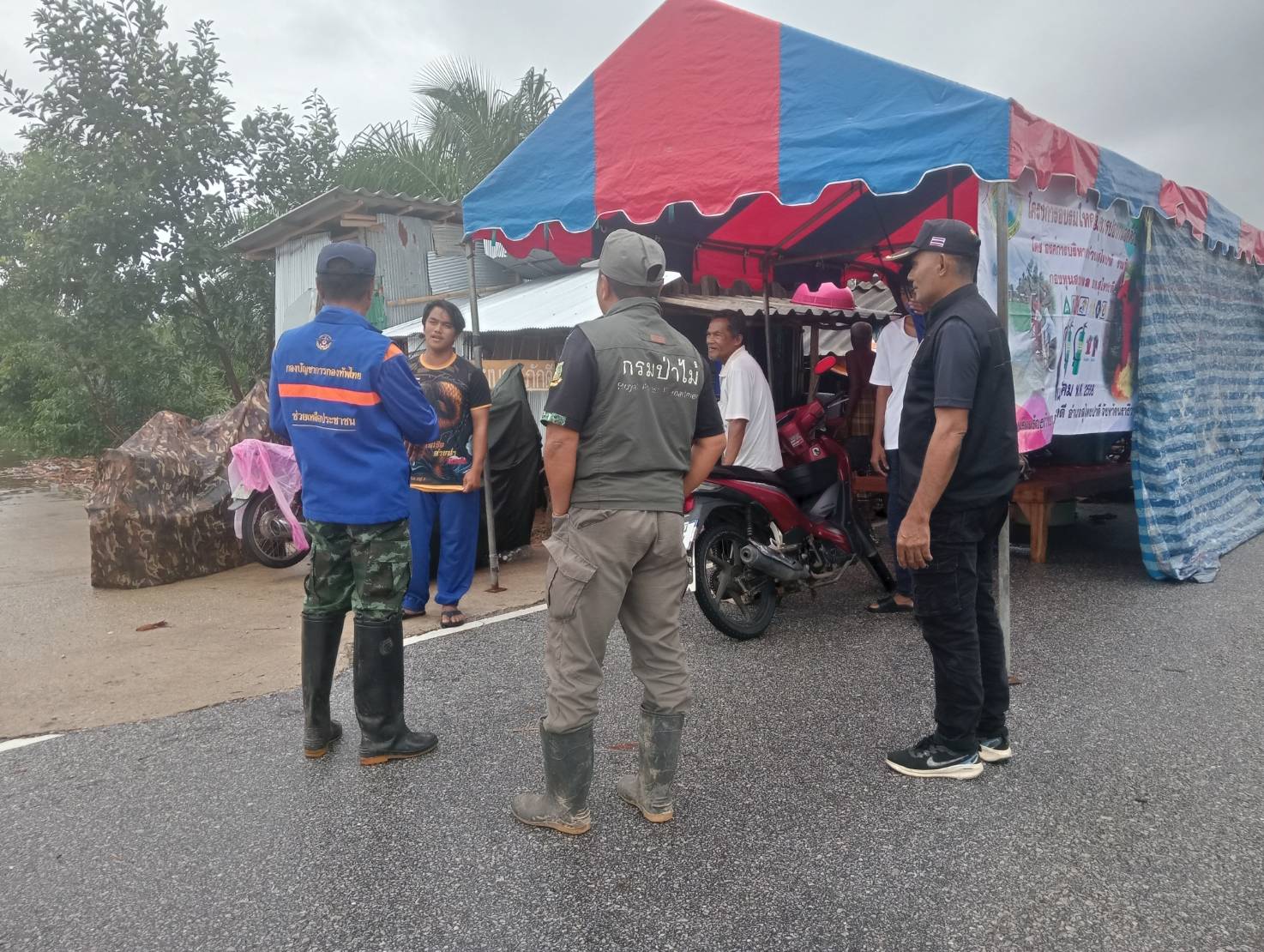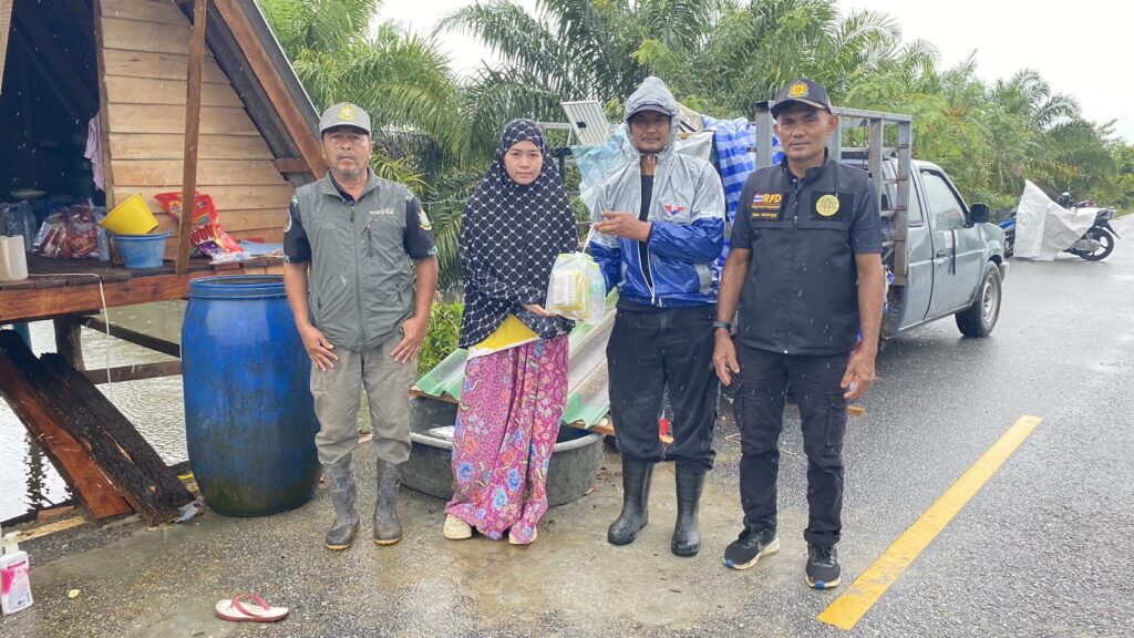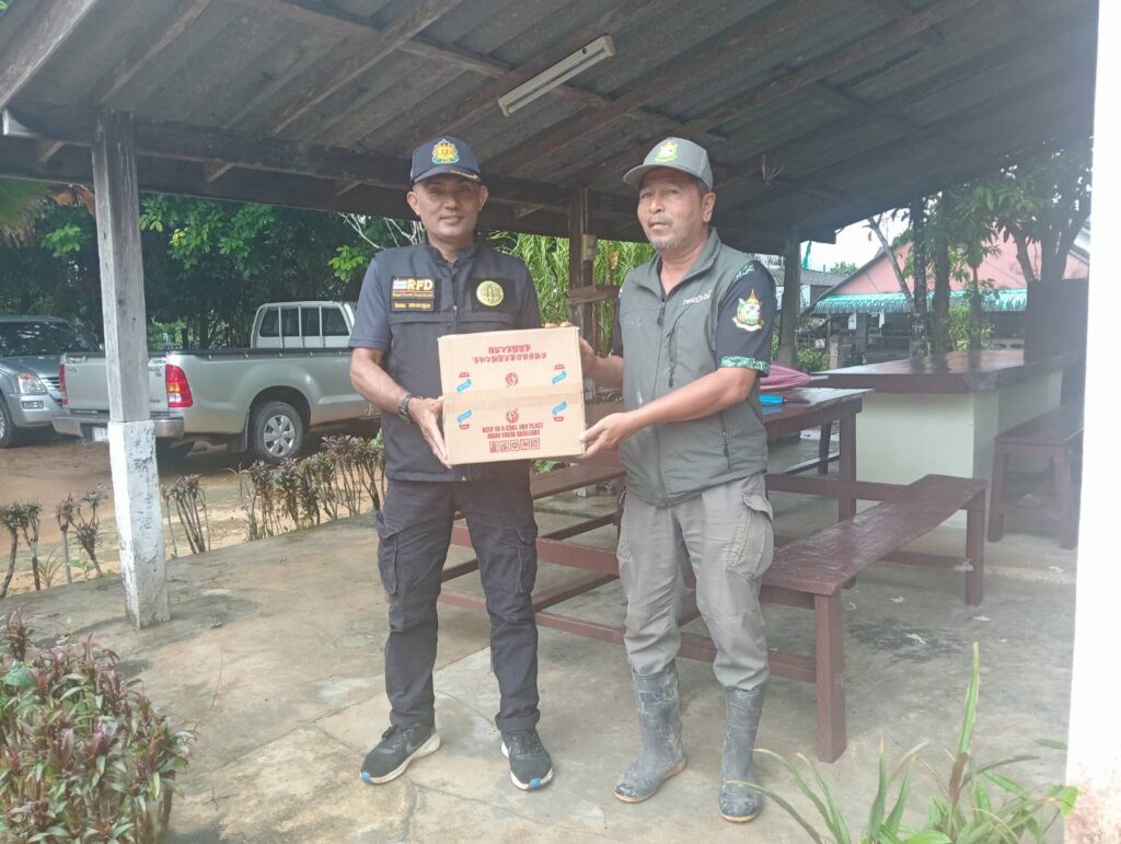 วันที่ 25 พฤศจิกายน 2568 เวลา 10.30 น. เป็นต้นไป นายวัลลบ ทองจารุแข หัวหน้าหน่วยป้องกันรักษาป่าที่ นธ.4 (สุไหงปาดี) พร้อมด้วยเจ้าหน้าที่หน่วยป้องกันรักษาป่าที่ นธ.4 (สุไหงปาดี) และชุดปฏิบัติการพิเศษป่าไม้นราธิวาส ร่วมลงพื้นที่ติดตามสถานการณ์อุทกภัย และเยี่ยมให้กำลังใจพร้อมทั้งพูดคุยและสอบถามผู้ใหญ่บ้านหมู่ที่ 7 บ้านโคกสะตอ เกี่ยวกับราษฎรที่พักพิงชั่วคราว ณ โรงเรียนราชภักดี และแหล่งพักพิงชั่วคราวบ้านโคกสะตอ ม.7 ตำบลสุไหงปาดี อำเภอสุไหงปาดี จังหวัดนราธิวาสพร้อมได้เข้าไปช่วยเหลือราษฎรที่กำลังประสบปัญหาอุทกภัยน้ำท่วม โดยได้แจกจ่ายน้ำดื่ม สิ่งของบริโภคให้กับราษฎรที่ประสบอุทกภัยน้ำท่วมในท้องที่หมู่ที่ 7 บ้านโคกสะตอ ตำบลสุไหงปาดี อำเภอสุไหงปาดี จังหวัดนราธิวาส