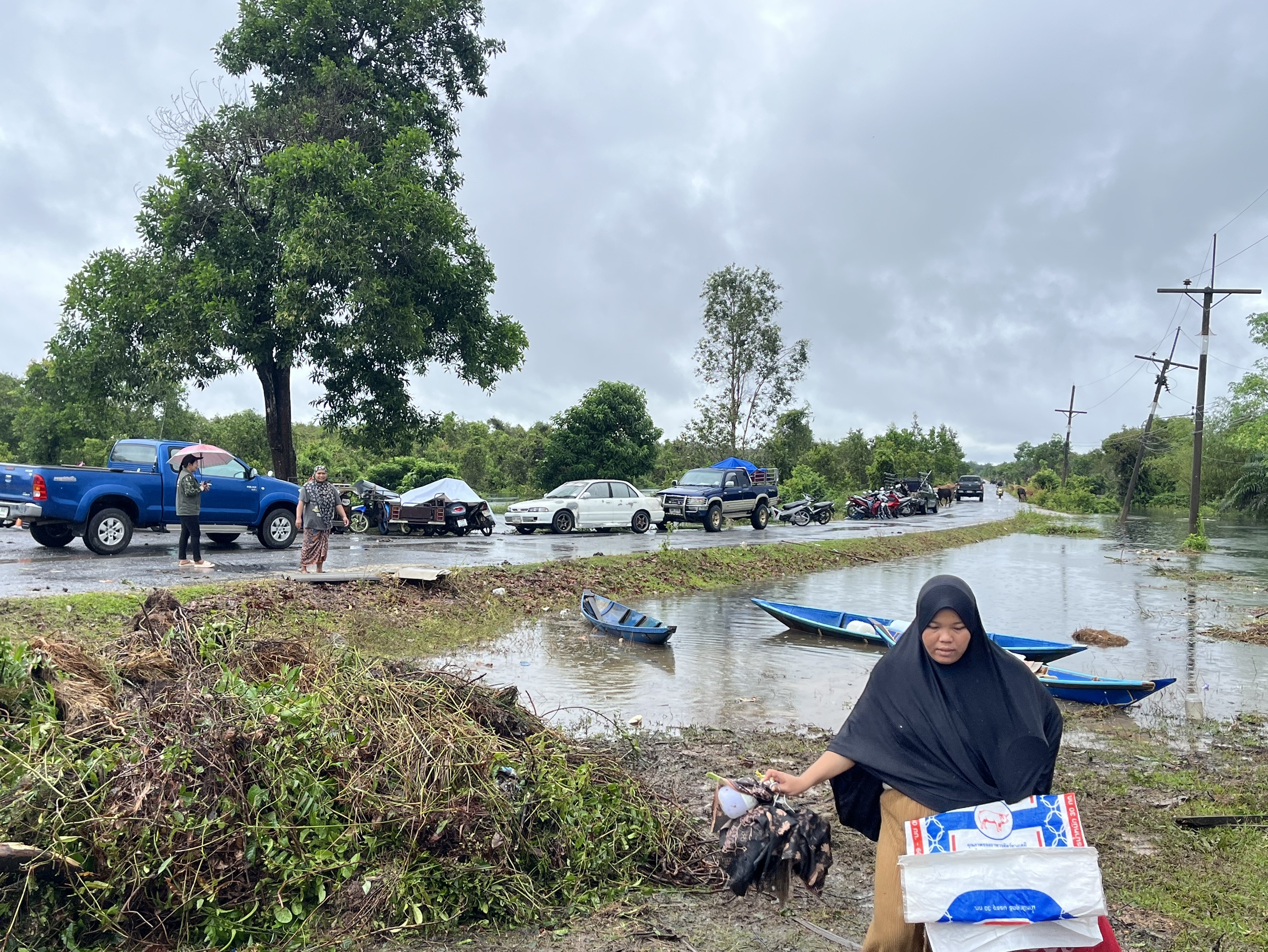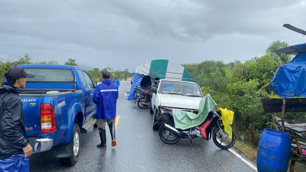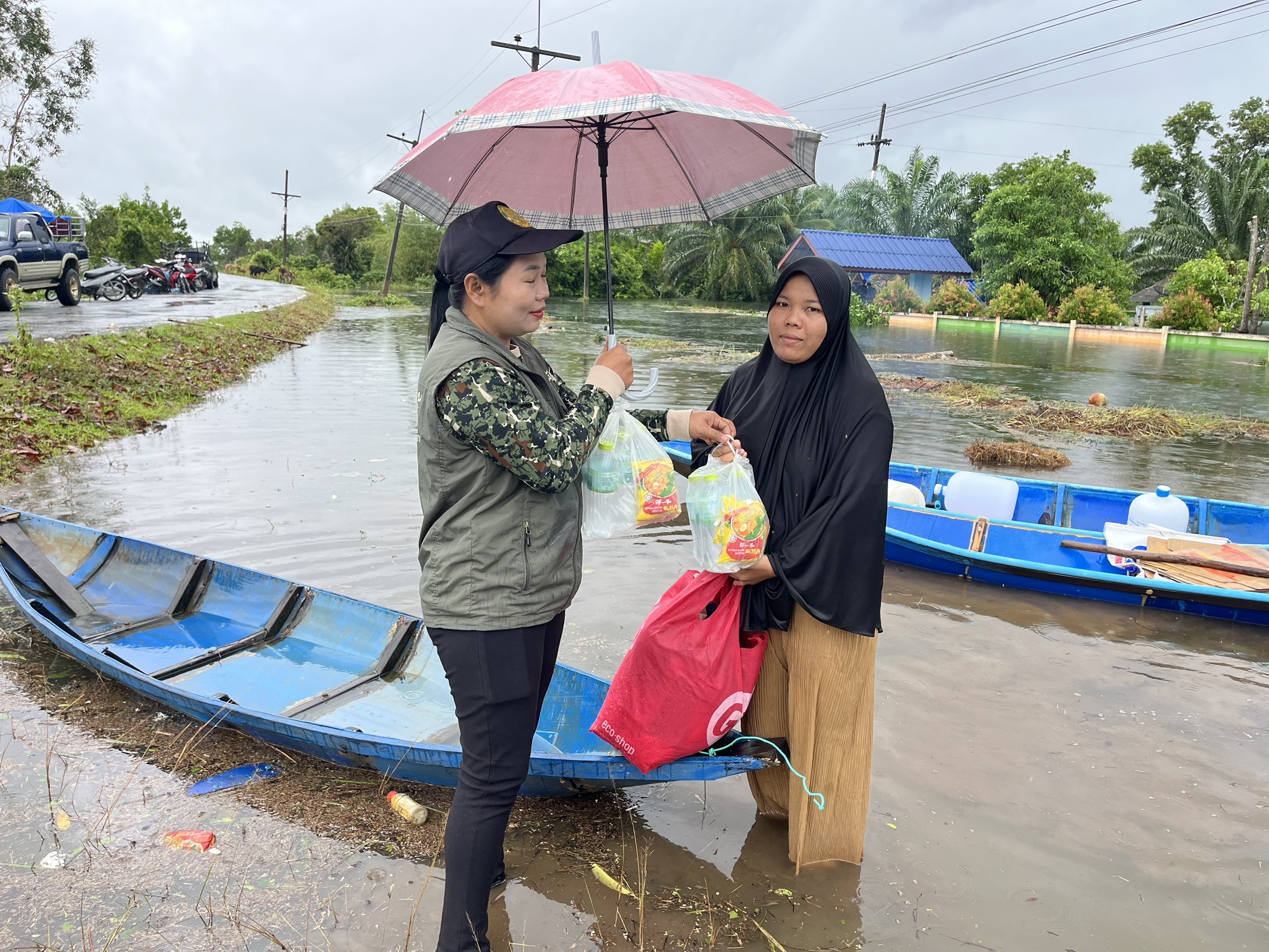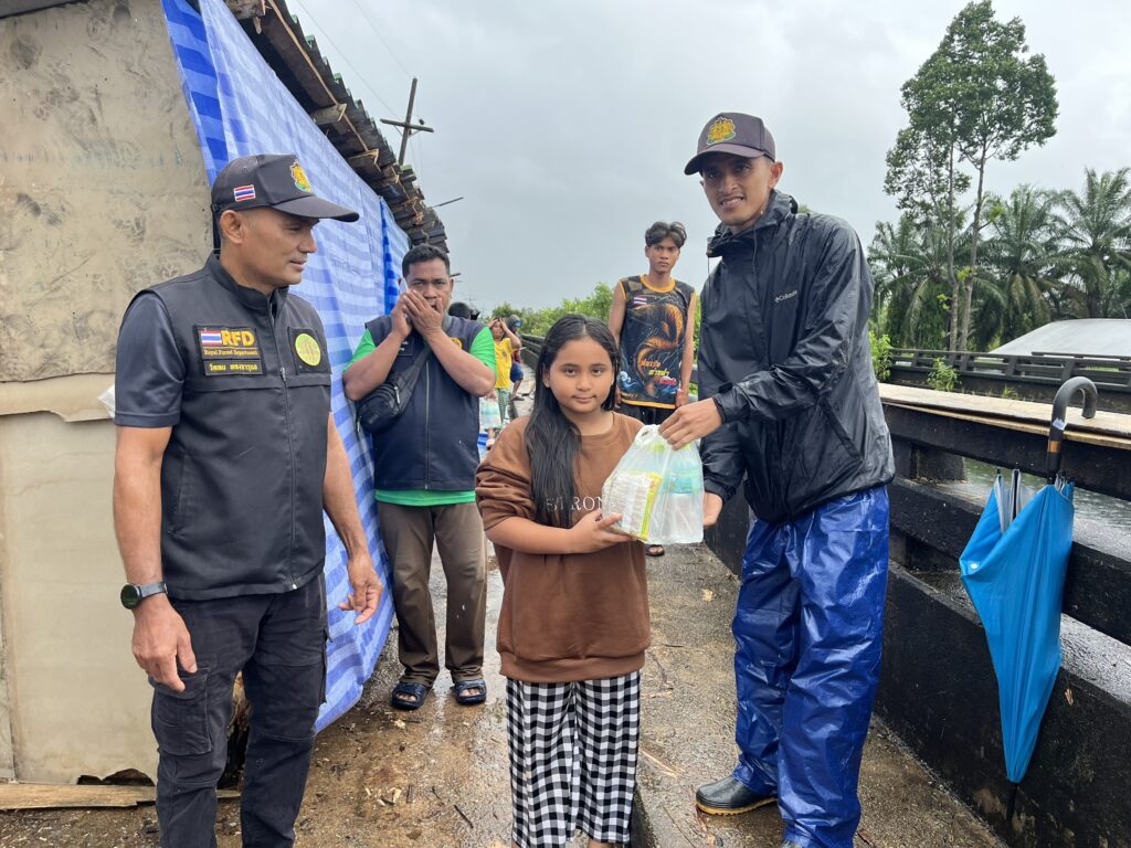 วันที่ 25 พฤศจิกายน 2568 เวลา 10.30 น. เป็นต้นไป นายวัลลบ ทองจารุแข หัวหน้าหน่วยป้องกันรักษาป่าที่ นธ.4 (สุไหงปาดี) พร้อมด้วยเจ้าหน้าที่หน่วยป้องกันรักษาป่าที่ นธ.4 (สุไหงปาดี) และชุดปฏิบัติการพิเศษป่าไม้นราธิวาส ร่วมลงพื้นที่ติดตามสถานการณ์อุทกภัย และเยี่ยมให้กำลังใจพร้อมทั้งพูดคุยและสอบถามผู้ใหญ่บ้านหมู่ที่ 7 บ้านโคกสะตอ เกี่ยวกับราษฎรที่พักพิงชั่วคราว ณ โรงเรียนราชภักดี และแหล่งพักพิงชั่วคราวบ้านโคกสะตอ ม.7 ตำบลสุไหงปาดี อำเภอสุไหงปาดี จังหวัดนราธิวาสพร้อมได้เข้าไปช่วยเหลือราษฎรที่กำลังประสบปัญหาอุทกภัยน้ำท่วม โดยได้แจกจ่ายน้ำดื่ม สิ่งของบริโภคให้กับราษฎรที่ประสบอุทกภัยน้ำท่วมในท้องที่หมู่ที่ 7 บ้านโคกสะตอ ตำบลสุไหงปาดี อำเภอสุไหงปาดี จังหวัดนราธิวาส