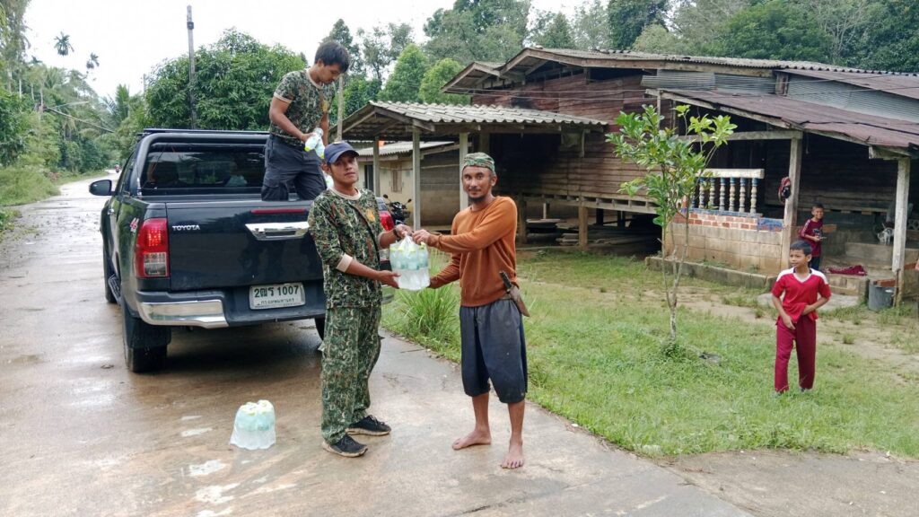 วันที่ ๒๗ พฤศจิกายน ๒๕๖๘ เวลา ๐๙.๓๐ น. เป็นต้นไป นายอับดุลกอเดร์ วาเตะ หัวหน้าหน่วยป้องกันรักษาป่าที่ นธ.๒ (รือเสาะ) ได้สั่งการให้เจ้าหน้าที่หน่วยป้องกันรักษาป่าที่ นธ.๒ (รือเสาะ) และชุดปฏิบัติการพิเศษป่าไม้นราธิวาส ร่วมลงพื้นที่ติดตามสถานการณ์น้ำพื้นที่สะพานข้ามแม่น้ำสายบุรี ในท้องที่ บ้านท่าเรือ อ.รือเสาะ จ.นราธิวาส ขณะนี้มวลน้ำลดลงจากเมื่อวานประมาณ 30 ซม. สภาพอากาศท้องฟ้ายังคงมืดครึ้มฝนตกทิ้งช่วง และได้มอบน้ำดื่มพร้อมทั้งให้กำลังใจให้กับประชาชนที่ได้รับผลกระทบในครั้งนี้ ในท้องที่ บ.สันติสุข ม.๒ ต.บาตง อ.รือเสาะ จ.นราธิวาส