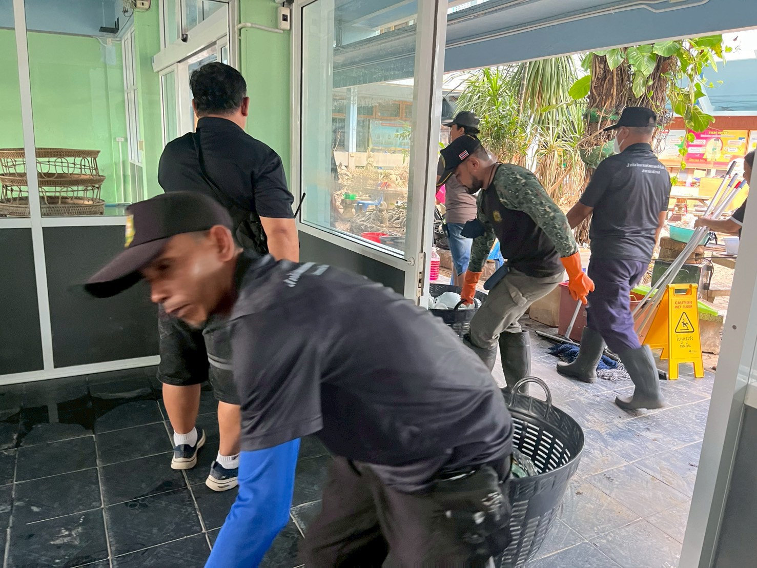 พร้อมด้วย นายสุธี ขอบขำ ผู้อำนวยการส่วนป้องกันรักษาป่าและควบคุมไฟป่า นายปลิว ชุมแดว ผู้อำนวยการศูนย์ป่าไม้ยะลา หัวหน้าหน่วยฯ และเจ้าหน้าที่ในสังกัดสำนักจัดการทรัพยากรป่าไม้ที่ 13 สาขานราธิวาส ร่วมกันลงพื้นที่ทำภารกิจช่วยเหลือฟื้นฟู พื้นที่ที่ได้รับผลกระทบจากเหตุอุทกภัยเป็นวันที่ 5 โดยมีการทำความสะอาด เคลื่อนย้ายสิ่งของในโรงเรียนหาดใหญ่วิทยาลัย และบริเวณโดยรอบของโรงเรียนดำเนินการช่วยเหลืออย่างสุดกำลังเพื่อให้พื้นที่ที่ได้รับผลกระทบสามารถฟื้นฟูกลับสู่สภาวะปกติได้โดยเร็วที่สุด