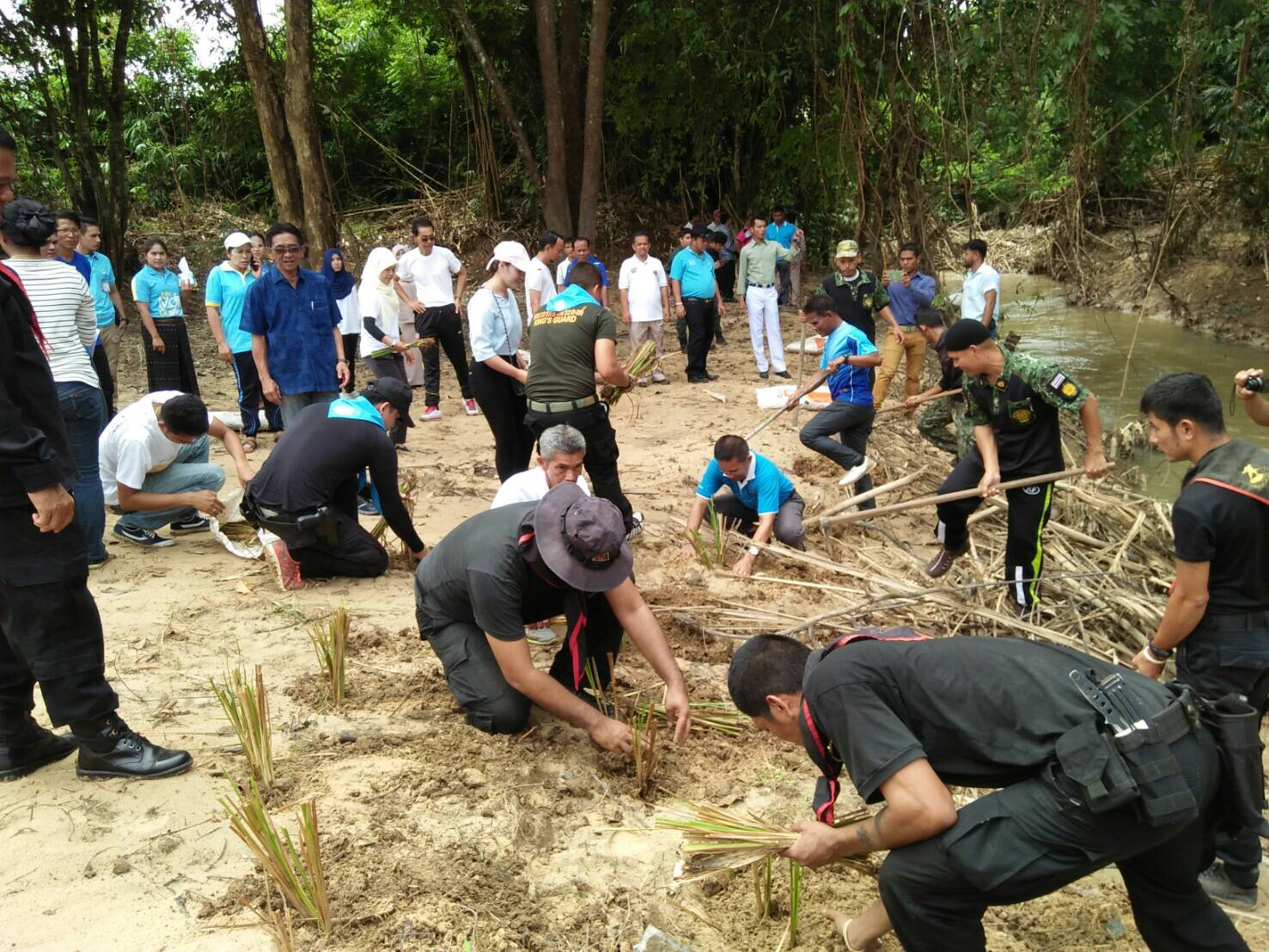 วันนี้ ๑๒ สิงหาคม เวลา ๑๑.๓๐ น. หน่วยป้องกันรักษาป่าที่ ยล.๑(กาบัง) ได้ร่วมปลูกหญ้าแฝดริมคลอง โรงเรียนกาบังพิทยาคม เนื่องในวันเฉลิมพระชนมพรรษา สมเด็จพระนางเจ้าสิริกิตติ์พระบรมราชินีนาถในราชกาลที่๙ เนื่องในโอกาส วันเฉลิมพระชนมพรรษา ๘๕ พรรษา ๑๒ สิงหาคม ๒๕๖๐ ณ. โรงเรียนพิทยาคม อำเภอกาบัง จังหวัดยะลา