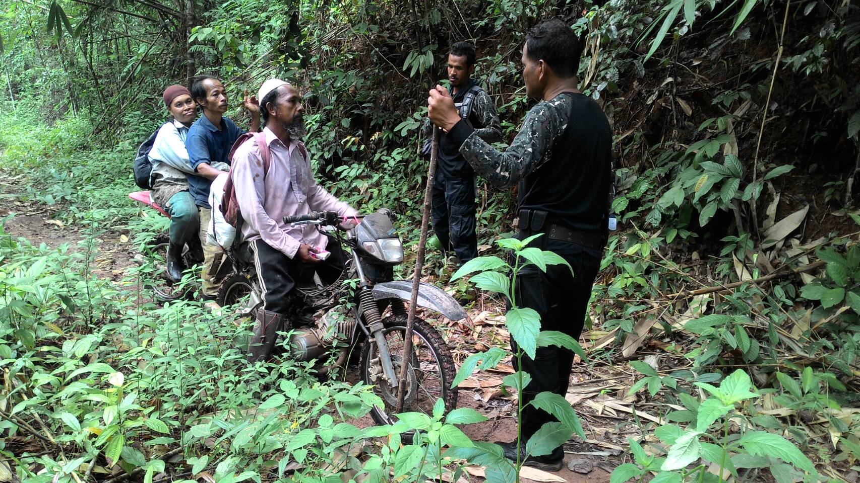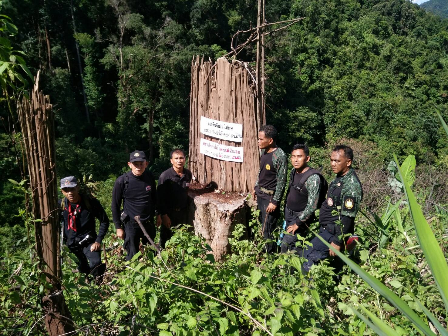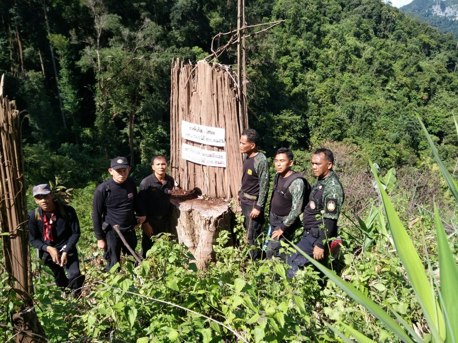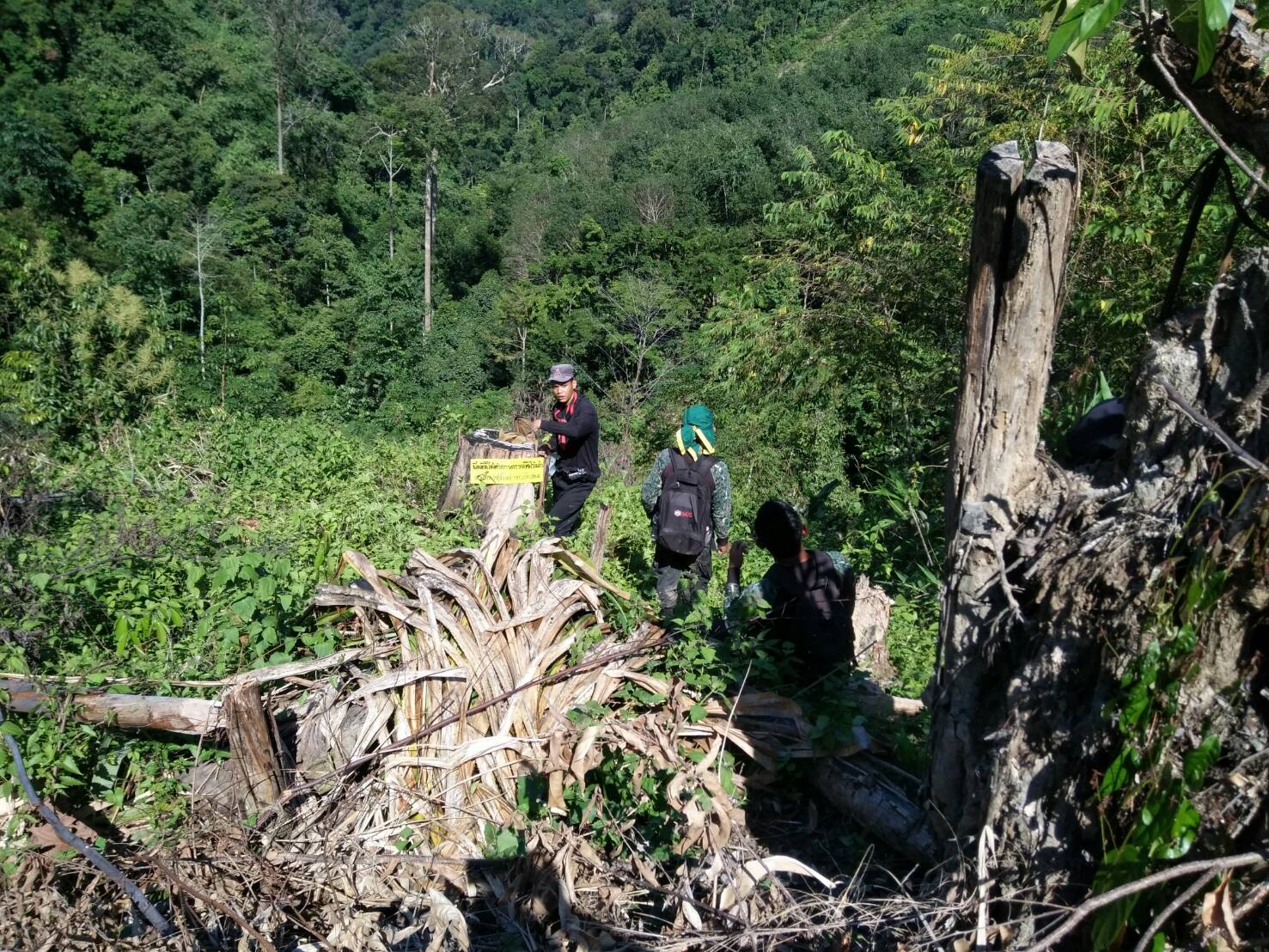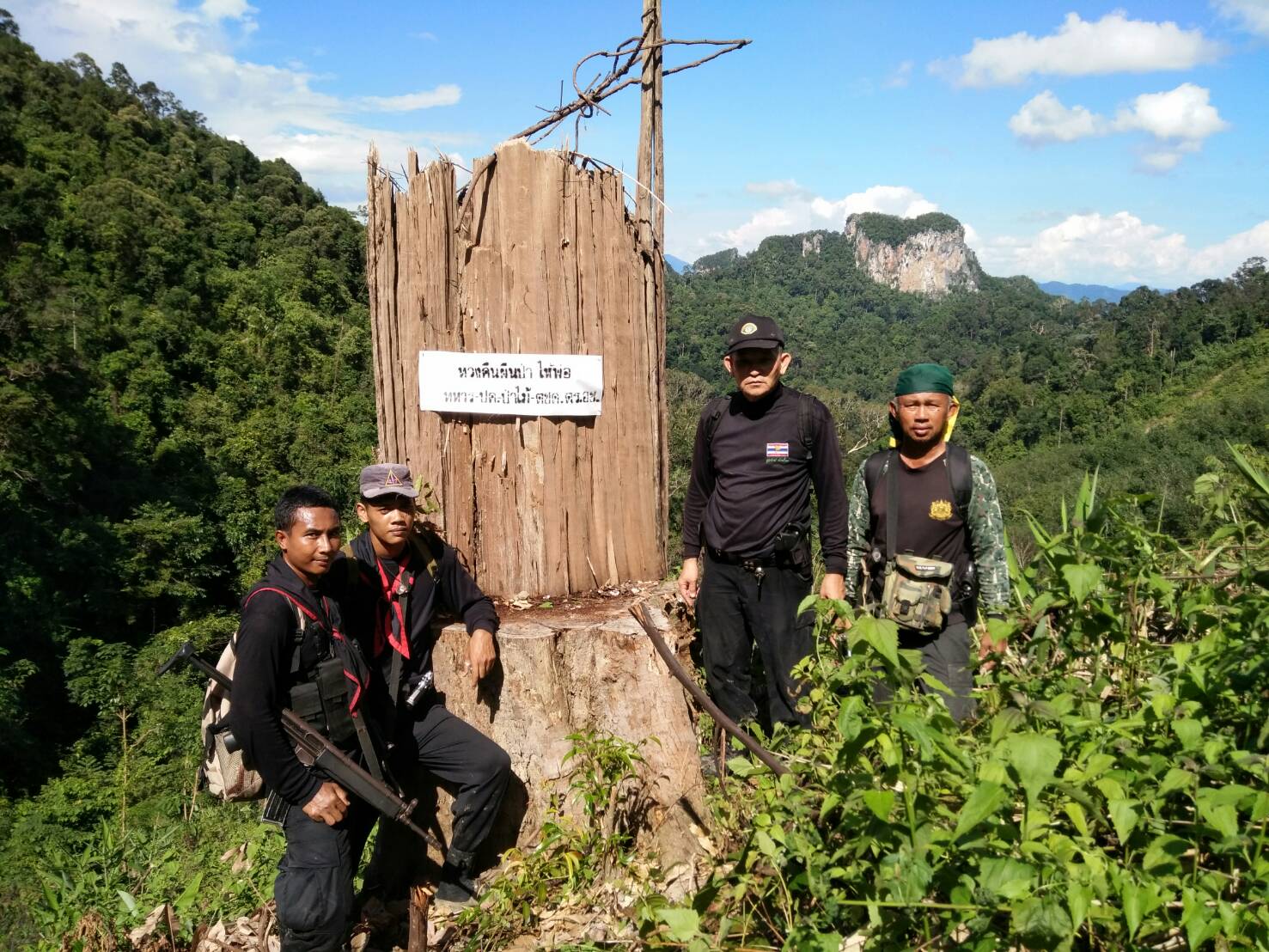 วันนี้ ๑๓ ก.ย ๖๐ เวลา ๐๙.๐๐ น.- ๑๘.๐๐ น. คณะเจ้าหน้าที่หนวยป้องกันรักษาป่าที่ ยล.๒ (ปะแต)เจ้าหน้าที่ ฉก.ตชด.๔๔ เจ้าหน้าที่สายตรวจฯ กก.๖ บก ปทส.จ.ยะลา เจ้าหน้าที่ ศปป.ที่ ๔ ภาคใต้ และเจ้าหน้าที่ทหารพรานที่ ๔๗๐๒ ได้ร่วมกันออกตรวจสอบพื้นที่ป่าถูกบุกรุกแผ้วถางตามผลการบินตรวจสอบสภาพป่า เมื่อวันที่ ๒๙ ส.ค.๖๐ ของ กขภ. สขว. กอ.รมน.ภาค ๔ สน. และตามโครงการเพิ่มประสิทธิภาพด้านการป้องกันและปราบปรามการบุกรุกทำลายทรัพยากรธรรมชาติ กอ.รมน.จ.ยะลา ในเขตป่าสงวนแห่งชาติป่าลาบูและป่าถ้ำทะลุ ท้องที่บ้านตะโละเว ม.๙ ต.ปะแต อ.ยะหา จ.ยะลา คณะเจ้าหน้าที่ได้ตรวจสอบบริเวณดังกล่าวตรวจพบพื้นที่ป่าถูกบุกรุกแผ้วถาง จำนวน ๒ จุด จุดที่ ๑ เนื้อที่ ๑๐ไร่ ที่พิกัด ๔๗. N ๗๔๒๕๔๗ E ๖๙๕๙๗๕ N และจุดที่ ๒ เนื้อที่ ๗ ไร่ ที่พิกัด ๗๔๒๒๐๖ E ๖๙๕๙๘๘ N รายละเอียดเพิ่มเติมจะรายงานให้ทราบต่อไป