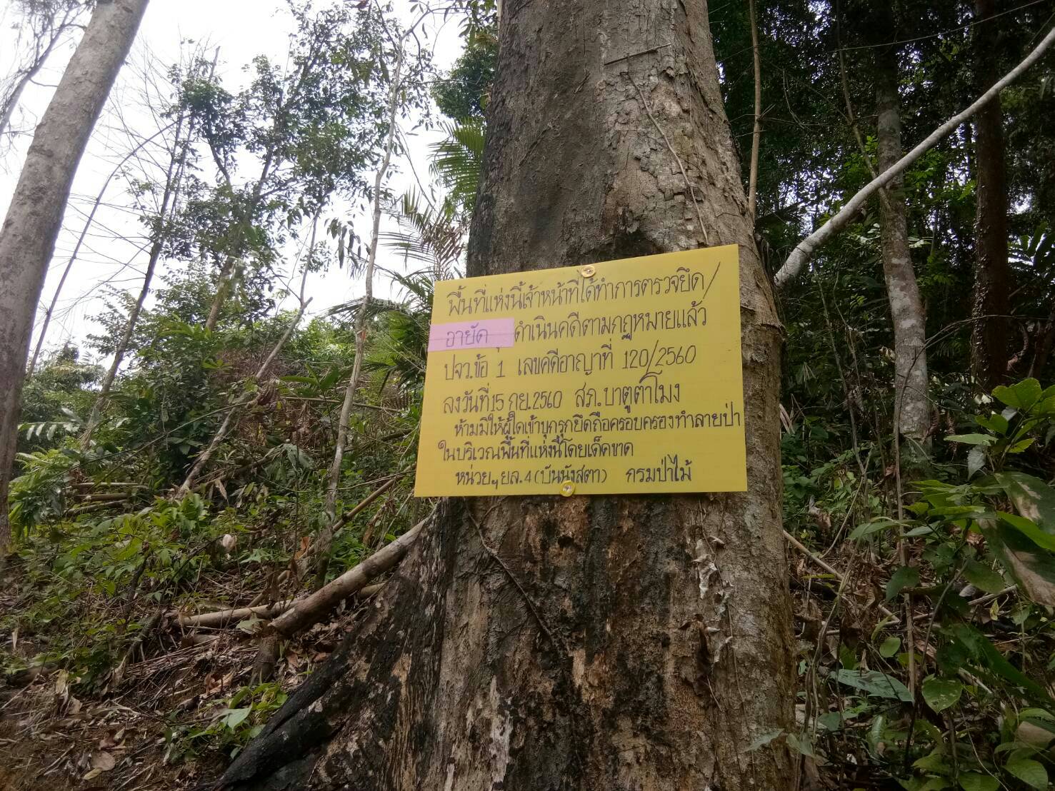 วันที่ 22 กันยายน 2560 เวลา 09.00น. หน่วยป้องกันรักษาป่าที่ ยล.4 (บันนังสตา) และเจ้าหน้าที่ ตชด. ชฝต. 4403. บ้านปิยะมิตร 4 ได้นำพนักงานสอบสวน สภ.บาตูตาโมง ตรวจสอบจุดเกิดเหตุการบุกรุกแผ้วทางทำลายป่า ตามคดี ปจว. ข้อ 1 คดีอาญาที่ 120 /2560 ลงวันที่ 15 ก.ย. 60 ท้องที่บ้านปิยะมิตร 4 ม.3 ต.ถ้ำทะลุ อ.บันนังสตา จ.ยะลา