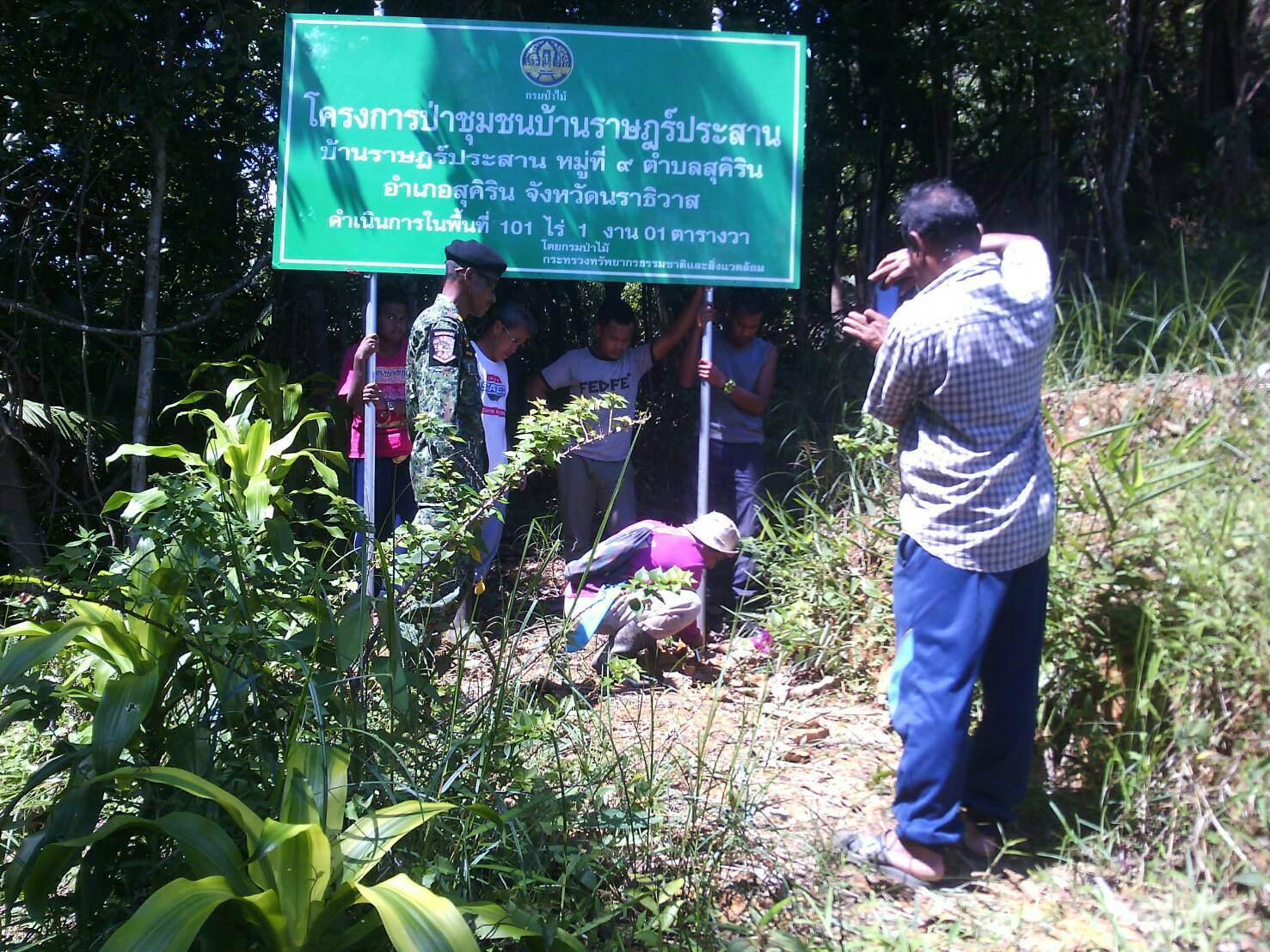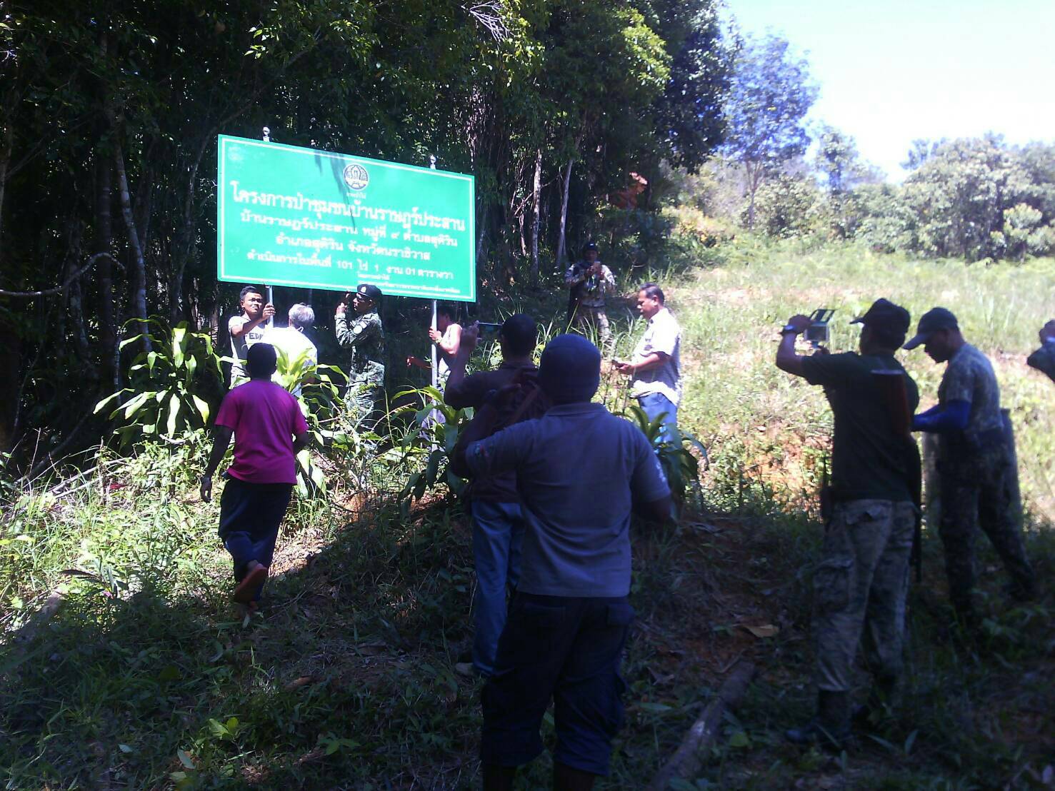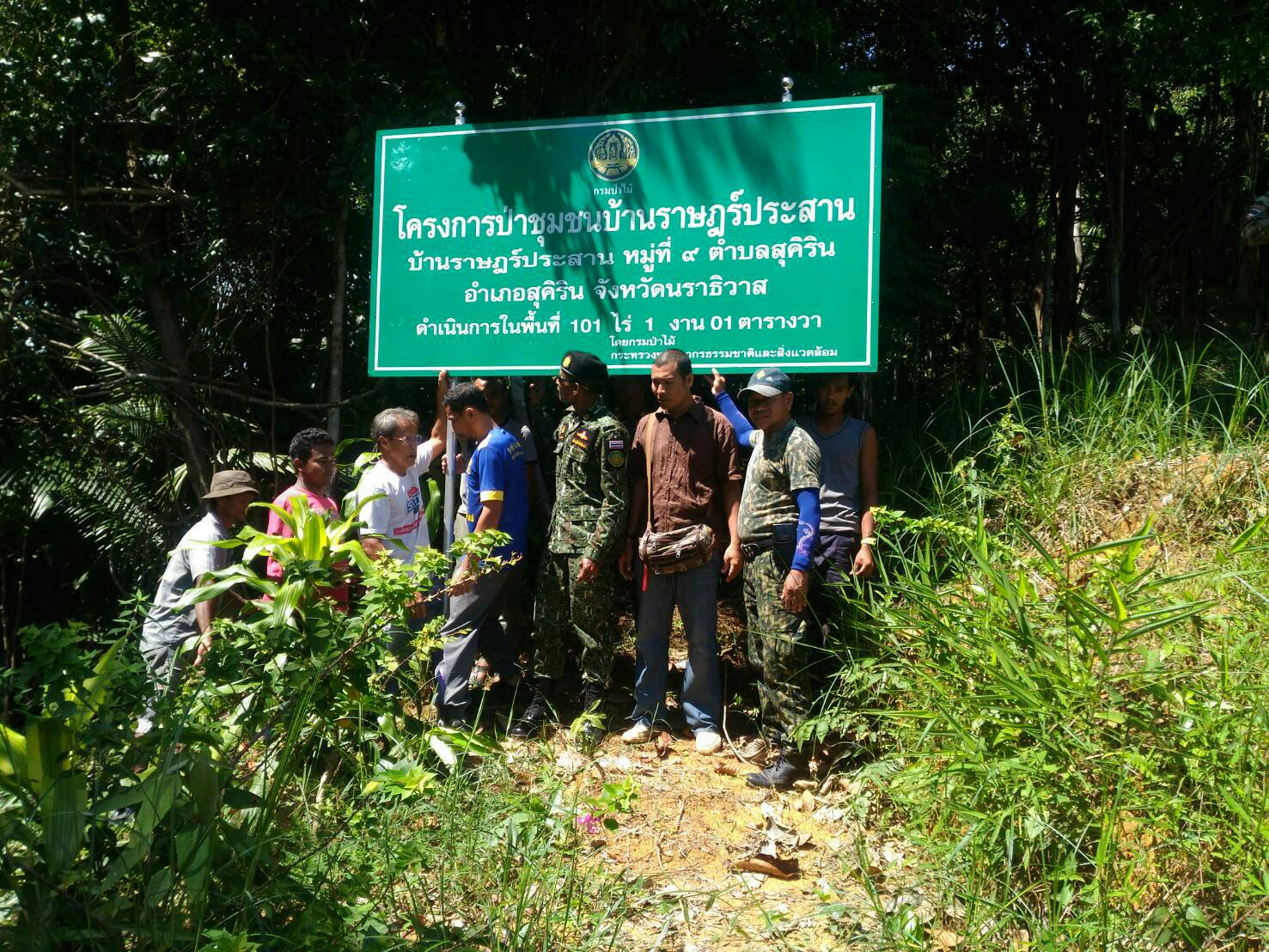 วันนี้ 18 ต.ค.60 เวลา 09.45 น. หน.หน่วยฯ นธ.7 (สุคิริน) ร่วมกับ ผู้ใหญ่บ้านและคณะกรรมการป่าชุมชนบ้านราษฏร์ประสาน , และ สมาชิก อส.อ.สุคิริน ร่วมกันปักป้ายโครงการป่าชุมชนบ้านราษฏร์ประสาน ณ.บ้านราษฏร์ประสาน ม.9 ต.สุคิริน อ.สุคิริน จ.นราธิวาส