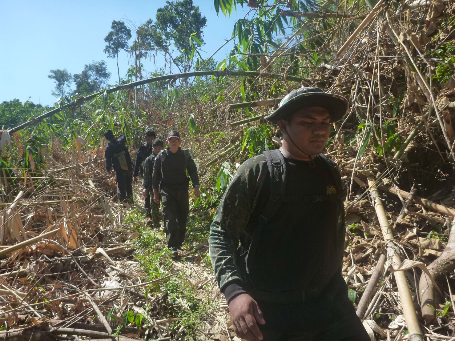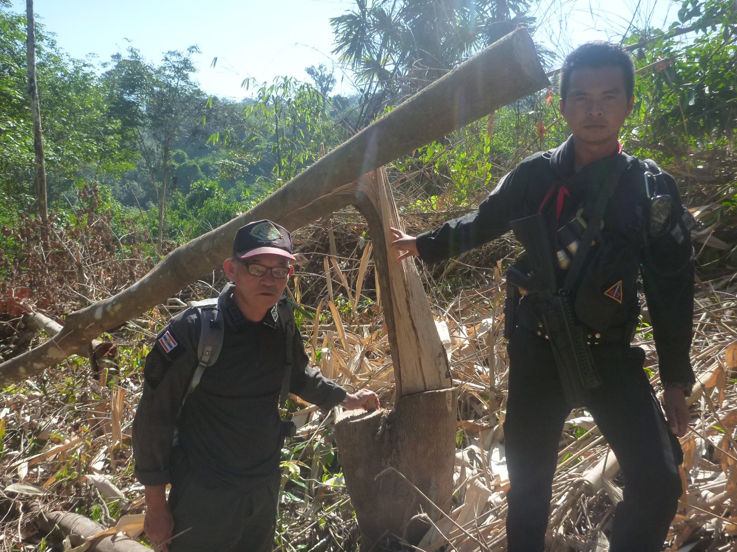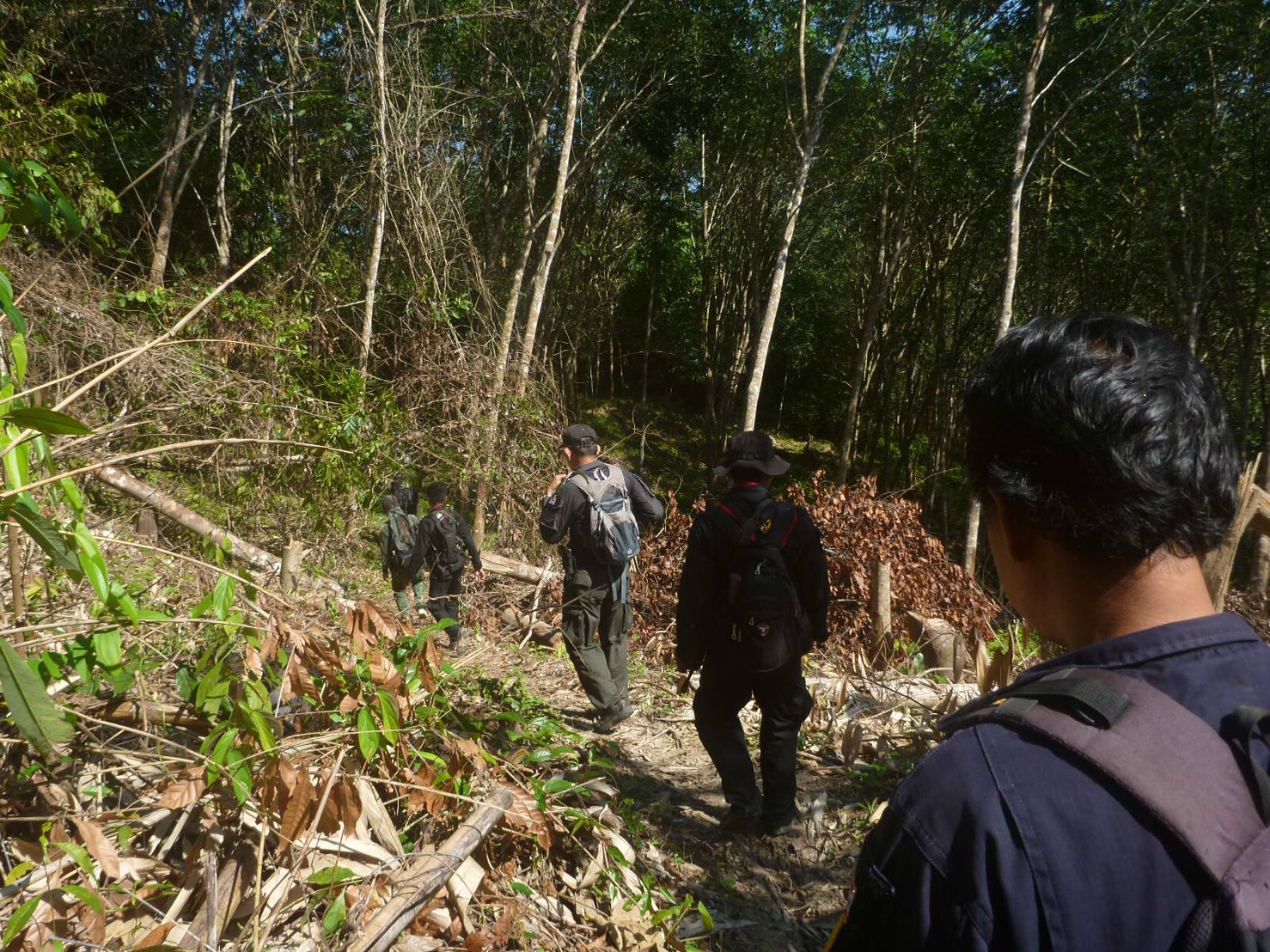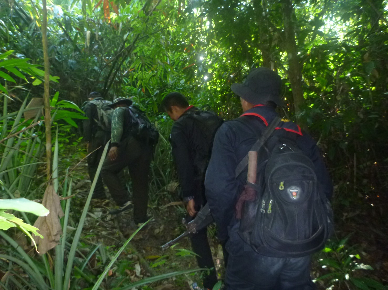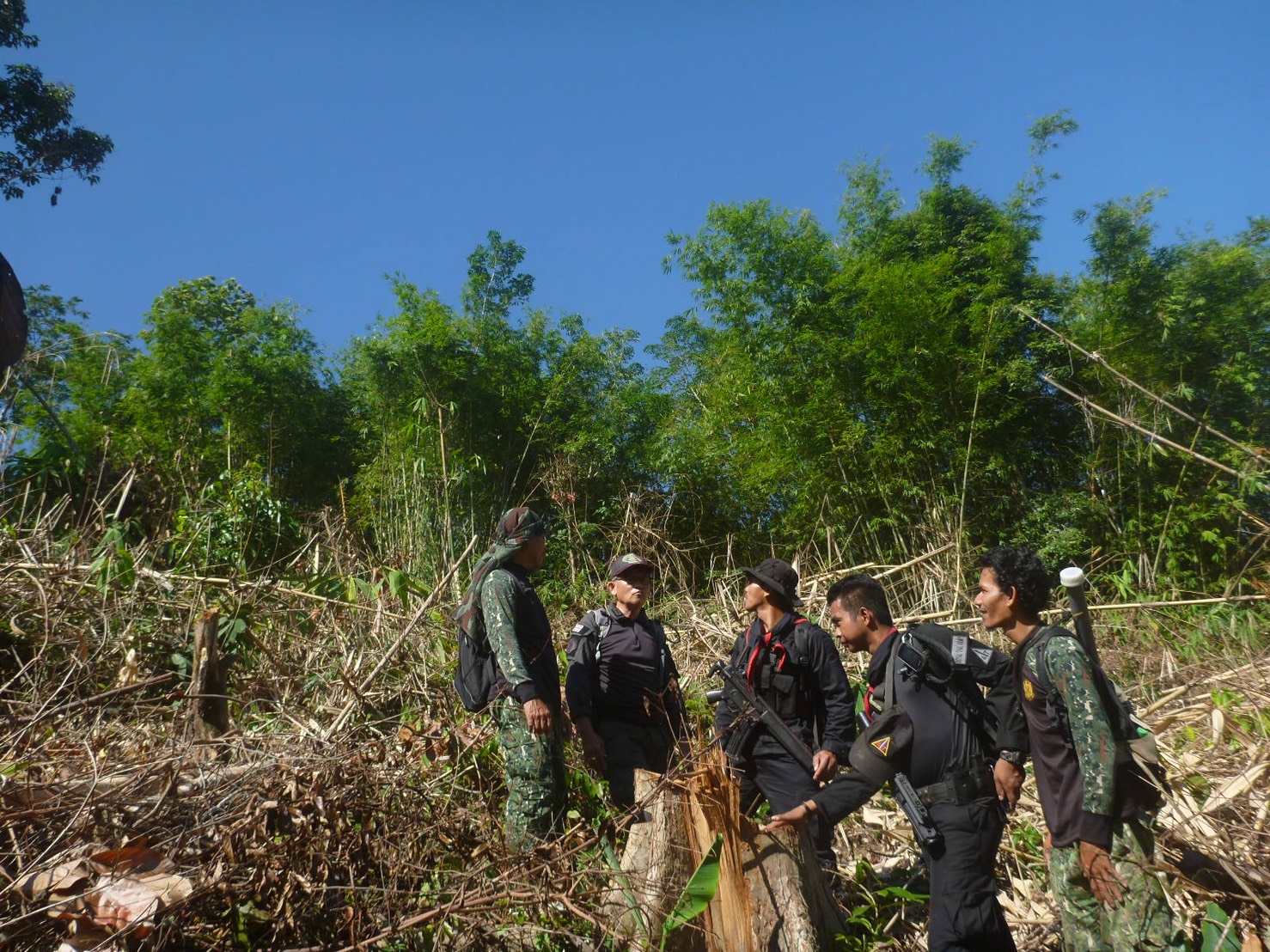 วันที่ ๑๘ ต.ค. ๖๐ เวลา ๐๘.๐๐ น.เป็นต้นไปคณะเจ้าหน้าที่หน่วยป้องกันรักษาป่าที่ ยล.๑ (กาบัง) สายตรวจ กก.๖บก.ปทส. เจ้าหน้าที่ทหารพรานที่ ๔๗๐๙ และเจ้าหน้าที่ฝ่ายปกครองอำเภอกาบัง ได้ร่วมกันออกตรวจสอบพื้นที่ป่าถูกบุกรุกแผ้วถางตามผลการบินตรวจสอบสภาพป่า เมื่อวันที่ ๒๙ ส.ค. ๖๐ ของกขภ. สขว. กอ.รมน.ภาค๔ สน. และตามโครงการเพิ่มประสิทธิภาพด้านการป้องกันและปราบปรามการบุกรุกทำลายทรัพยากรธรรมชาติ กอ.รมน.จ.ยะลา ในเขตป่าสงวนแห่งชาติป่ากาบัง ท้องที่บ้านเมาะยี ม.๑๐ ต.บาละ อ.กาบัง จ.ยะลา คณะเจ้าหน้าที่ได้ตรวจสอบบริเวณดังกล่าว ตรวจพบพื้นที่ป่าถูกบุกรุกแผ้วถาง จำนวน ๑ แปลง เนื้อที่ ๑-๒-๕๖ ไร่ ที่พิกัด ๔๗N ๐๗๑๙๑๒๖ E ,๐๗๐๘๑๑๑ N เวลา ๑๑.๓๐ น.