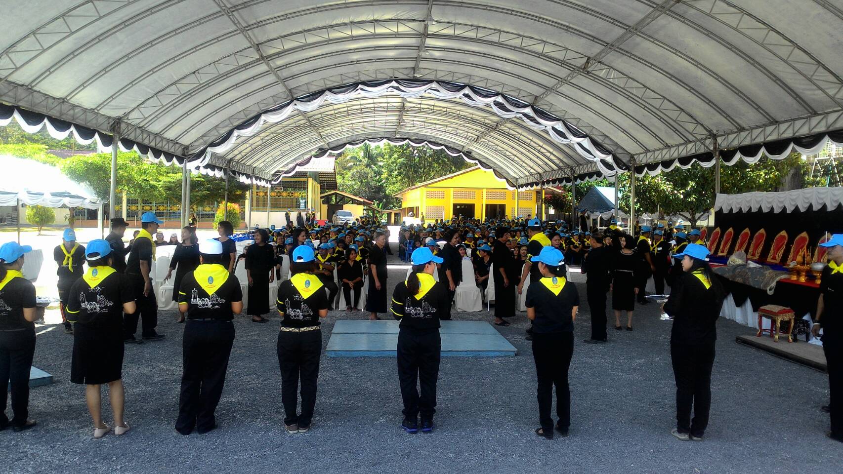 วันนี้(๒๔ ต.ค.๖๐)เวลา ๐๙.๐๐ น.เจ้าหน้าที่หน่วยฯ.ยล.๒(ปะแต)ร่วมกับอำเภอยะหา,หัวหน้าส่วนราชการ,หน่วยกำลังในพื้นที่,กำนัน-ผู้ใหญ่บ้านและประชาชนในพื้นที่ จิตอาสา ร่วมกันซักซ้อมแนวทางการปฏิบัติหน้าที่ของจิตอาสาในพระราชพิธีถวายพระเพลิง พระบรมศพพระบาทสมเด็จพระปรมินทรมหาภูมิพลอดุลยเดช ณ.วัดวงกตบรรพต (วัดตาชี) หมู่ที่๒ ต.ตาชี อ.ยะหา จ.ยะลา ในวันที่ ๒๖ ต.ค.๖๐ นี้ โดยมีนาย ชัยชนะ กฤตยานาถ นายอำเภอยะหา เป็นประธาน