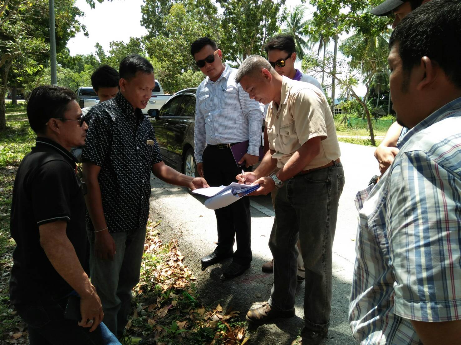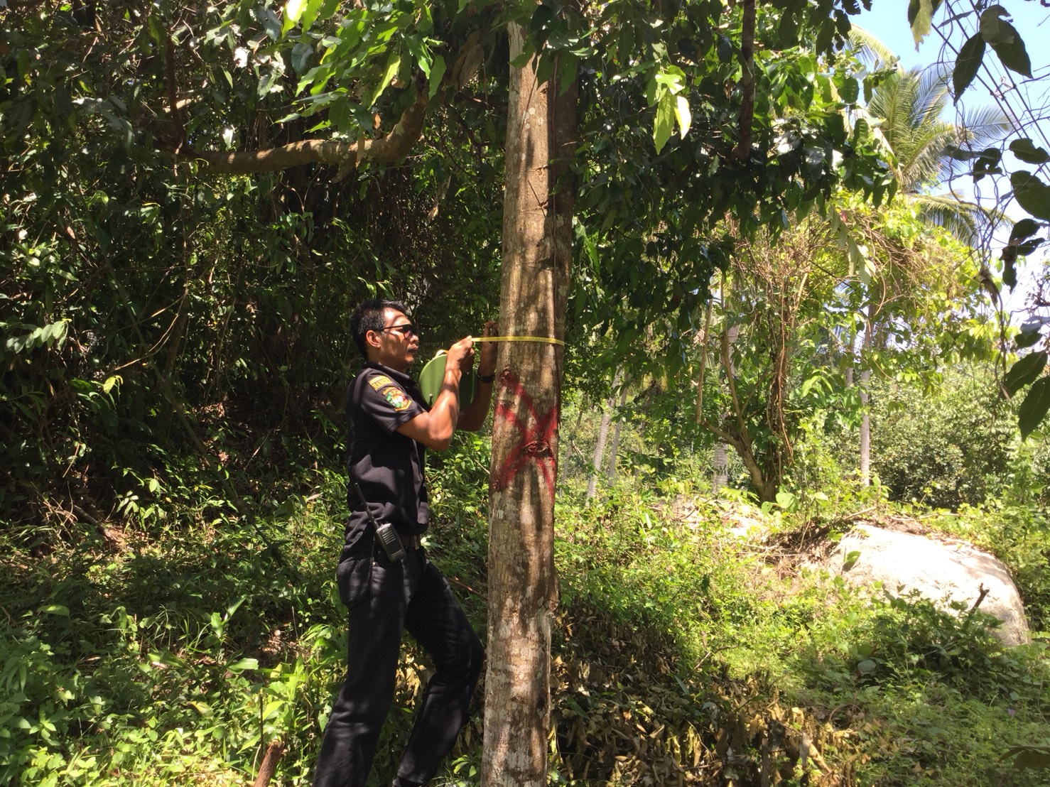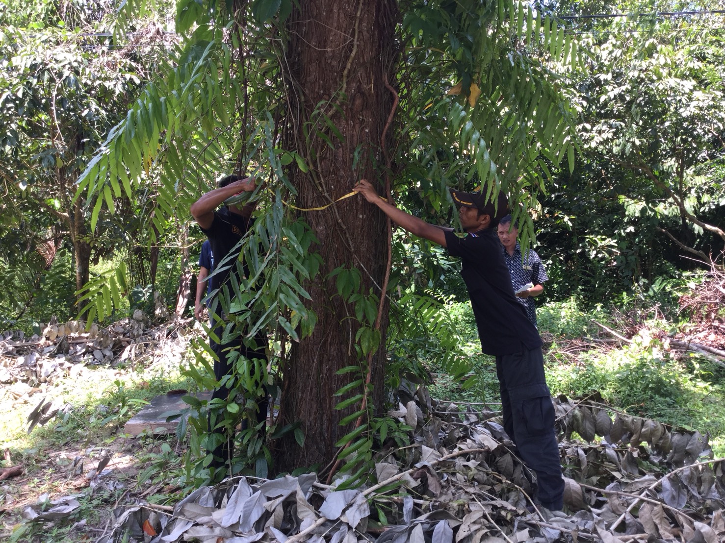ร่วมกันตรวจสอบต้นไม้ริมทางถนนหน้าพระตำหนักทักษิณรสชนิเวศน์ ตามโครงการงานปรับปรุงระบบไฟฟ้าเป็นสายเคเบิลไต้ดินบริเวณรอบนอกพระตำหนักทักษิณราชนิเวศน์ จังหวัดนราธิวาส เพื่อดำเนินการในขั้นต่อไป