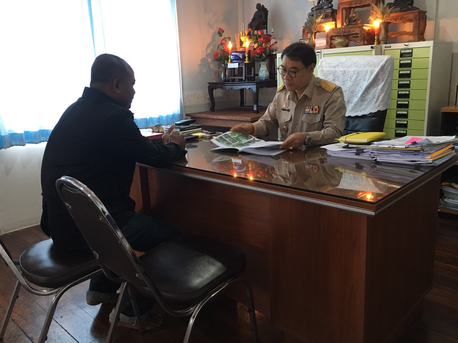 เจ้าหน้าที่ส่วนส่งเสริมการปลูกป่า ออกประชาสัมพันธ์ให้กับผู้สนใจเข้าร่วมโครงการฯพร้อมอธิบายหลักเกณฑ์การเข้าร่วมโครงการฯ