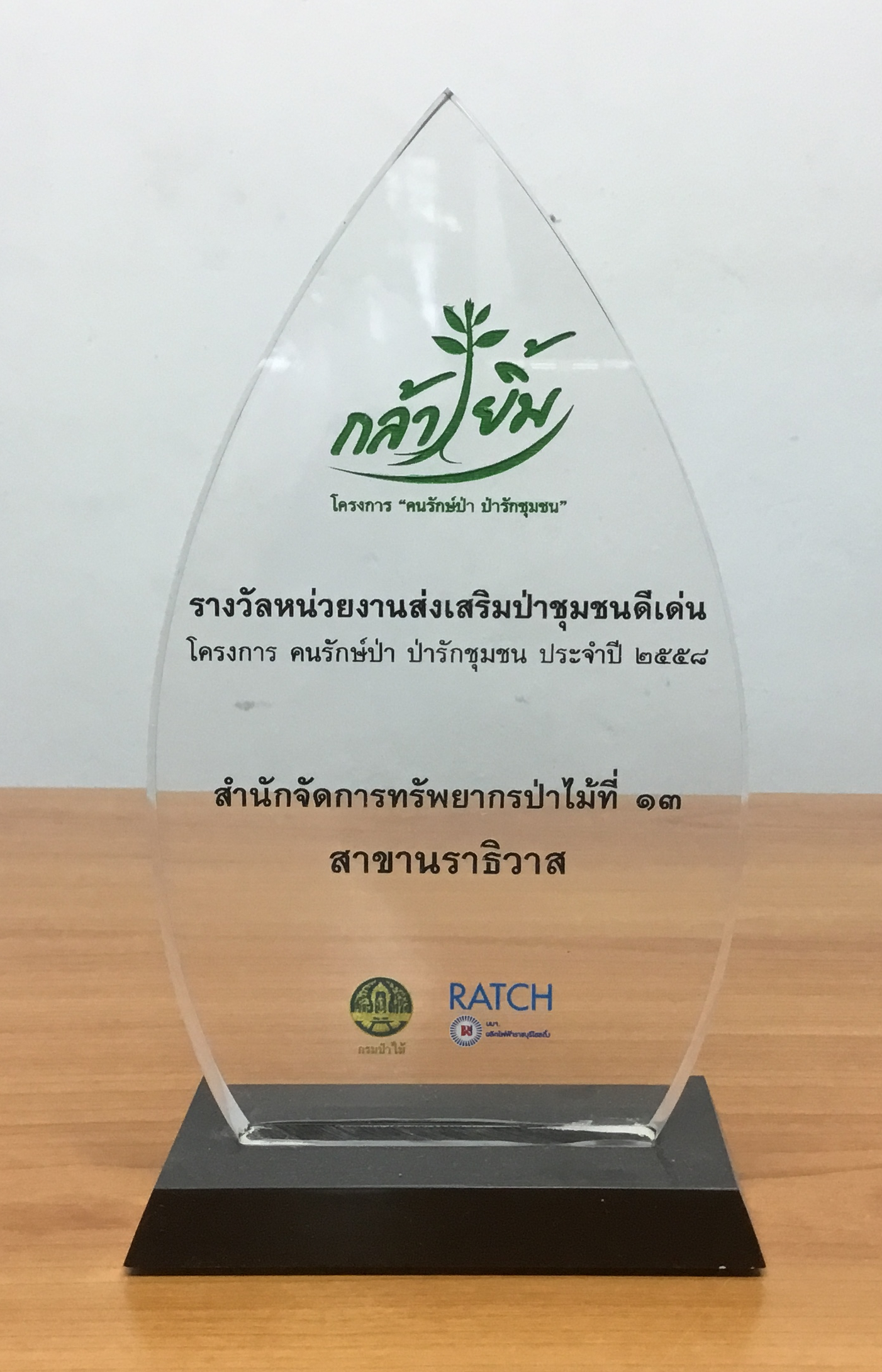 ประจำปี 2558 รางวัลหน่วยงานส่งเสริมป่าชุมชนดีเด่น โครงการ คนรักษ์ป่า ป่ารักชุมชน ประจำปี 2558 สำนักจัดการทรัพยากรป่าไม้ที่ 13 สาขานราธิวาส