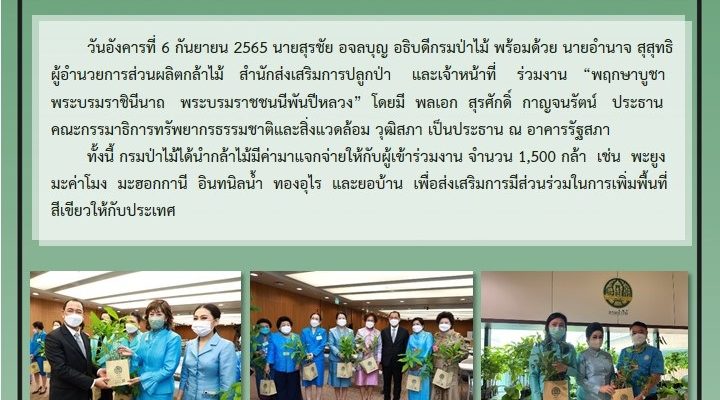 กรมป่าไม้ร่วมงาน “พฤกษาบูชา พระบรมราชินีนาถ พระบรมราชชนนีพันปีหลวง”