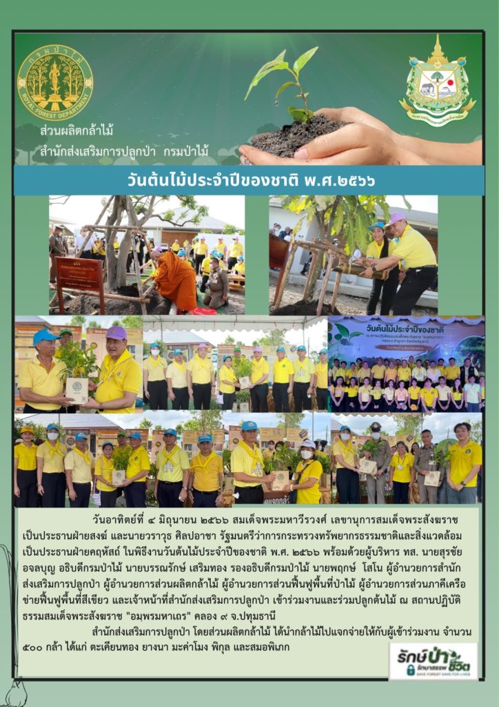 กรมป่าไม้ร่วมแจกกล้าไม้ในงานวันต้นไม้ประจำปีของชาติ พ.ศ.2566 ณ สถานปฏิบัติธรรมสมเด็จพระสังฆราช “อมฺพรมหาเถร” คลอง 9 จ.ปทุมธานี7 มิถุนายน 2023 by nursery