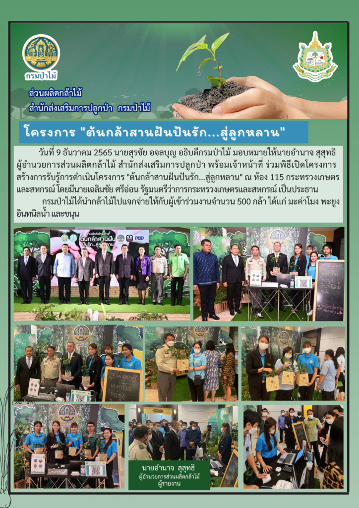 กรมป่าไม้ร่วมแจกกล้าไม้ในพิธีเปิดโครงการสร้างการรับรู้การดำเนินโครงการ “ต้นกล้าสานฝันปันรัก…สู่ลูกหลาน” ณ กระทรวงเกษตรและสหกรณ์9 ธันวาคม 2022 by nursery