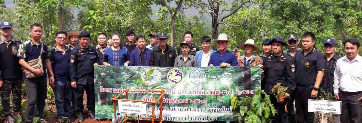 วันอังคาร ที่ ๙ มกราคม ๒๕๖๐ เวลา ๐๙.๓๙ น. นายสุทิน จันทร์งาม นายอำเภอแม่วาง นางวนิดา จันทร์งาม นายกเหล่ากาชาดอำเภอแม่วาง พร้อมส่วนราชการอำเภอแม่วาง ตำรวจ ทหาร ป่าไม้ องค์กรปกครองส่วนท้องถิ่น ชมรมกำนัน ผู้ใหญ่บ้านฯ ประชาชนอำเภอแม่วาง ร่วมกิจกรรมปลูกป่าเนื่องในวันต้นไม้ประจำปีของชาติ พ.ศ. ๒๕๖๐ ณ บ้านแม่สะป๊อก หมู่ ๖ ตำบลแม่วาง อำเภอแม่วาง โดยสถานีเพาะชำกล้าไม้จังหวัดเชียงใหม่ให้การสนับสนุนกล้าไม้จำนวน 600 กล้า