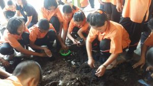 ภาคบ่ายร่วมกับครูป่าไม้ของ สจป.ที่ ๑๐ (ราชบุรี) ให้ความรู้เชิงปฎิบัติการ การเพาะชำกล้าไม้ ให้กับคณะครูและนักเรียนชั้น ม.๑ ร.ร.กรับใหญ่ว่องกุศลกิจพิทยาคม ต.กรับใหญ่ อ.บ้านโป่ง จ.ราชบุรี จำนวน ๑๙๘ คน