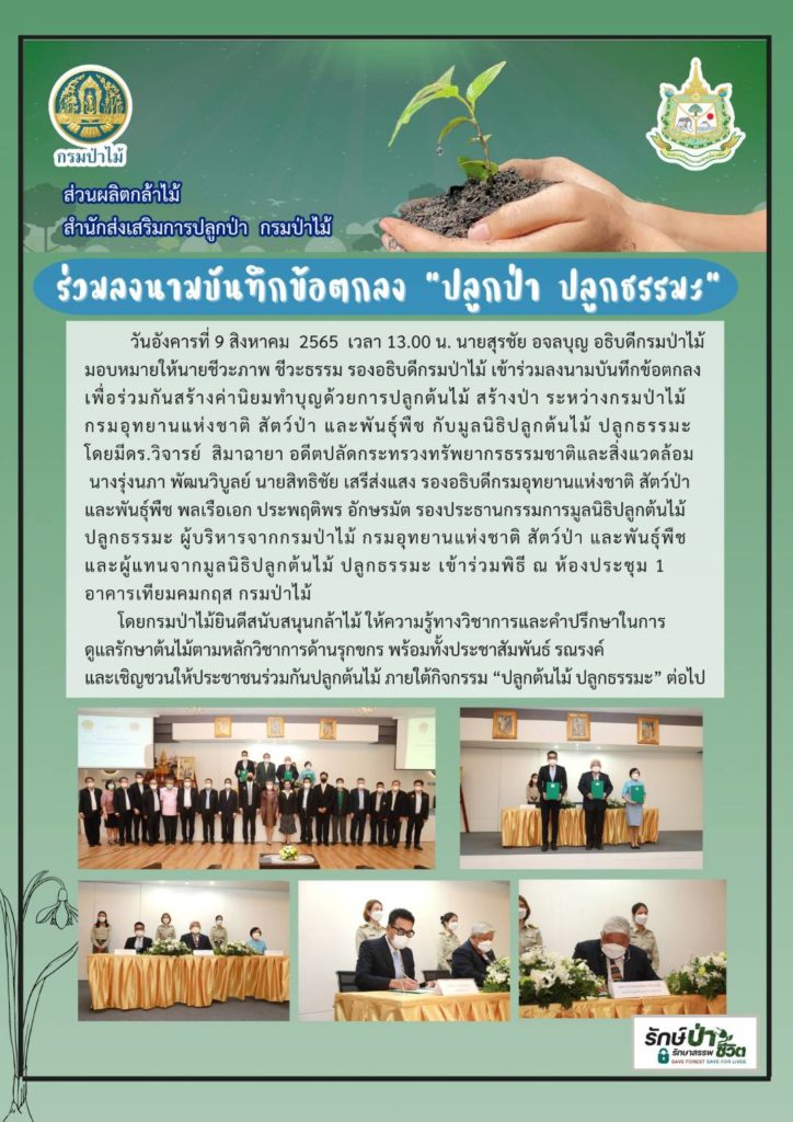 กรมป่าไม้ร่วมลงนามบันทึกข้อตกลง “ปลูกป่า ปลูกธรรมะ”