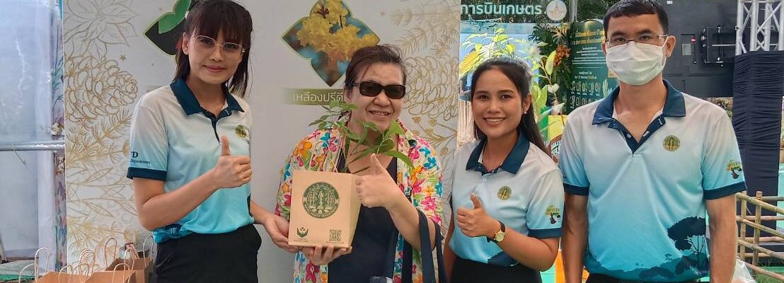 ในการนี้ กรมป่าไม้แจกจ่ายกล้าไม้ ๖ ชนิด ได้แก่ สัก ยางนา ตะแบก ทรงบาดาล เหลืองปรีดียาธร และทองอุไร ซึ่งวันนี้แจกจ่ายกล้าไม้ จำนวน ๓๕๔ ต้น โดยมีผู้ขอรับกล้าไม้ ๙๒ คน