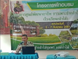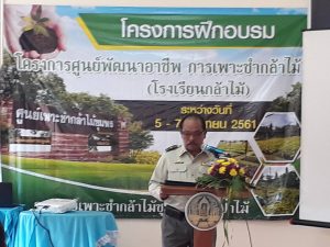 ศูนย์เพาะชำกล้าไม้ชุมพรได้ดำเนินการจัดฝึกอบรมราษฎร โครงการพัฒนาอาชีพการเพาะชำกล้าไม้ (โรงเรียนกล้าไม้) วันที่ 5-7 กันยายน 2561 จำนวน 3 วัน โดยมีนายสมชาย ต่วนกูเปีย ผอ.ศูนย์ป่าไม้ชุมพรเป็นประธานเปิดการฝึกอบรม มีผู้เข้ารับการอบรมตลอดหลักสูตร30คน