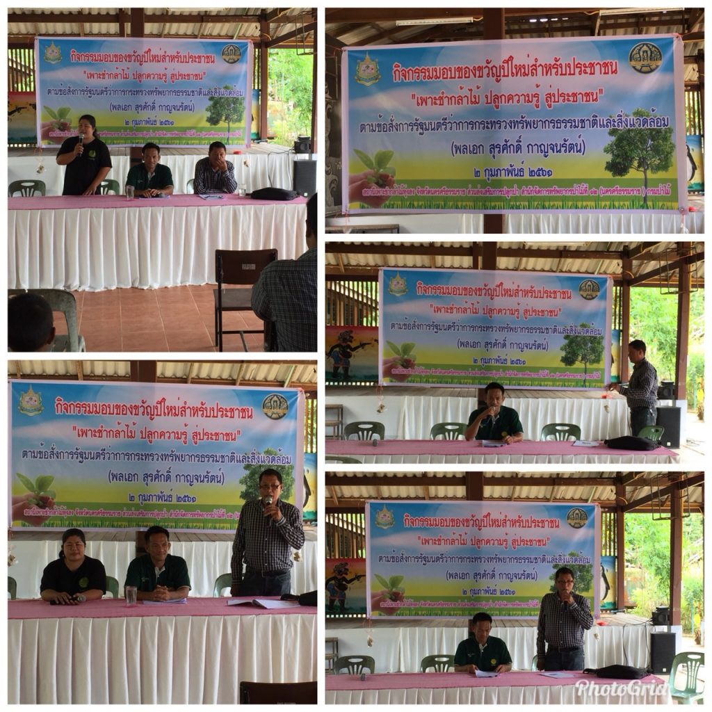 วันที่ 2 กุมภาพันธ์ 2561 นายอาคม ง่านวิสุทธิพันธ์ หัวหน้าสถานีเพาะชำกล้าไม้ทุ่งสง จังหวัดนครศรีธรรมราช ส่วนส่งเสริมการปลูกป่า สำนักจัดการทรัพยากรป่าไม้ที่ 12 (นครศรีธรรมราช) พร้อมเจ้าหน้าที่ จัดกิจกรรมมอบของขวัญปีใหม่สำหรับประชาชน ตามข้อสั่งการรัฐมนตรีว่าการกระทรวงทรัพยากรธรรมชาติและสิ่งแวดล้อม โดยการบรรยายให้ความรู้ในหัวข้อ “เพาะชำกล้าไม้ ปลูกความรู้ สู่ประชาชน” ตามข้อเสนอของกรมป่าไม้โดยสำนักส่งเสริมการปลูกป่า พร้อมสาธิตการเพาะชำกล้าไม้และให้ผู้เข้าร่วมกิจกรรมได้ปฏิบัติการเพาะชำกล้าไม้ เป็นการสนับสนุนนโยบายของรัฐบาลในการส่งเสริมให้มีเรือนเพาะชำชุมชน/ตำบล แก่ผู้ปกครองนักเรียนโรงเรียนบ้านไทรงาม และนักเรียนโรงเรียนบ้านไทรงาม ณ โรงเรียนบ้านไทรงาม ม.5 บ้านบ้านไทรงาม ต.สวนขัน อ.ช้างกลาง จ.นครศรีธรรมราช มีผู้เข้ารับการฝึกอบรม 48 คน และสนับสนุนกล้าไม้ (กล้าไม้ที่พร้อมสำหรับย้ายชำ) จำนวน 7 ตะกร้า, เหง้าสัก 400 เหง้า, ถุงเพาะชำกล้าไม้ จำนวน 2,000 ใบ เพื่อให้ผู้เข้าร่วมกิจกรรมฝึกปฏิบัติการเพาะชำกล้าไม้ต่อไป พร้อมนำกล้าไม้ไปแจกจ่าย จำนวน 600 กล้า