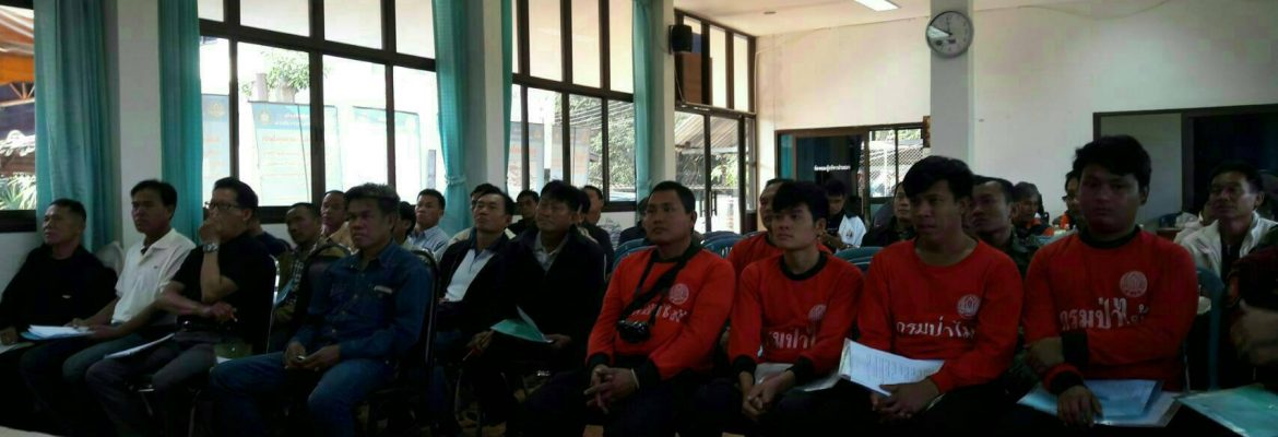 วันที่ 1 กุมภาพันธ์ 2560 เวลา 10:30 น.สำนักฯ 3 (ลำปาง) นายชูเกียรติ พงศ์ศิริวรรณ ผอ.สำนักฯ นายบัณฑิต ขีตตะสังคะ ผอ.ส่วนส่งเสริมการปลูกป่า โดยสถานีเพาะชำกล้าไม้สบปราบ จังหวัดลำปาง ได้รับเชิญให้เป็นวิทยากร ตามโครงการอบรมอาสาสมัครป้องกันไฟป่าร่วมกับหน่วยส่งเสริมการควบคุมไฟป่าเสริมงาม จัดโดย อบต.แม่กัวะ อ.สบปราบ จ.ลำปาง ซึ่งสถานีฯได้บรรยายให้ความรู้เกี่ยวกับหลักปรัชญาเศรษฐกิจพอเพียง การส่งเสริมการปลูกไม้ 3 อย่างประโยชน์ 4 อย่าง โดยเฉพาะวิธีการเพาะชำต้นยางนาและไผ่ และได้มอบต้นกล้ายางนา จำนวน 9 ต้นให้ทาง อบต.แม่กัวะนำไปปลูก ตามโครงการ 9 ยางนา ก้าวตามรอยพระบาท มีผู้เข้ารับการอบรม จำนวน 60 คน