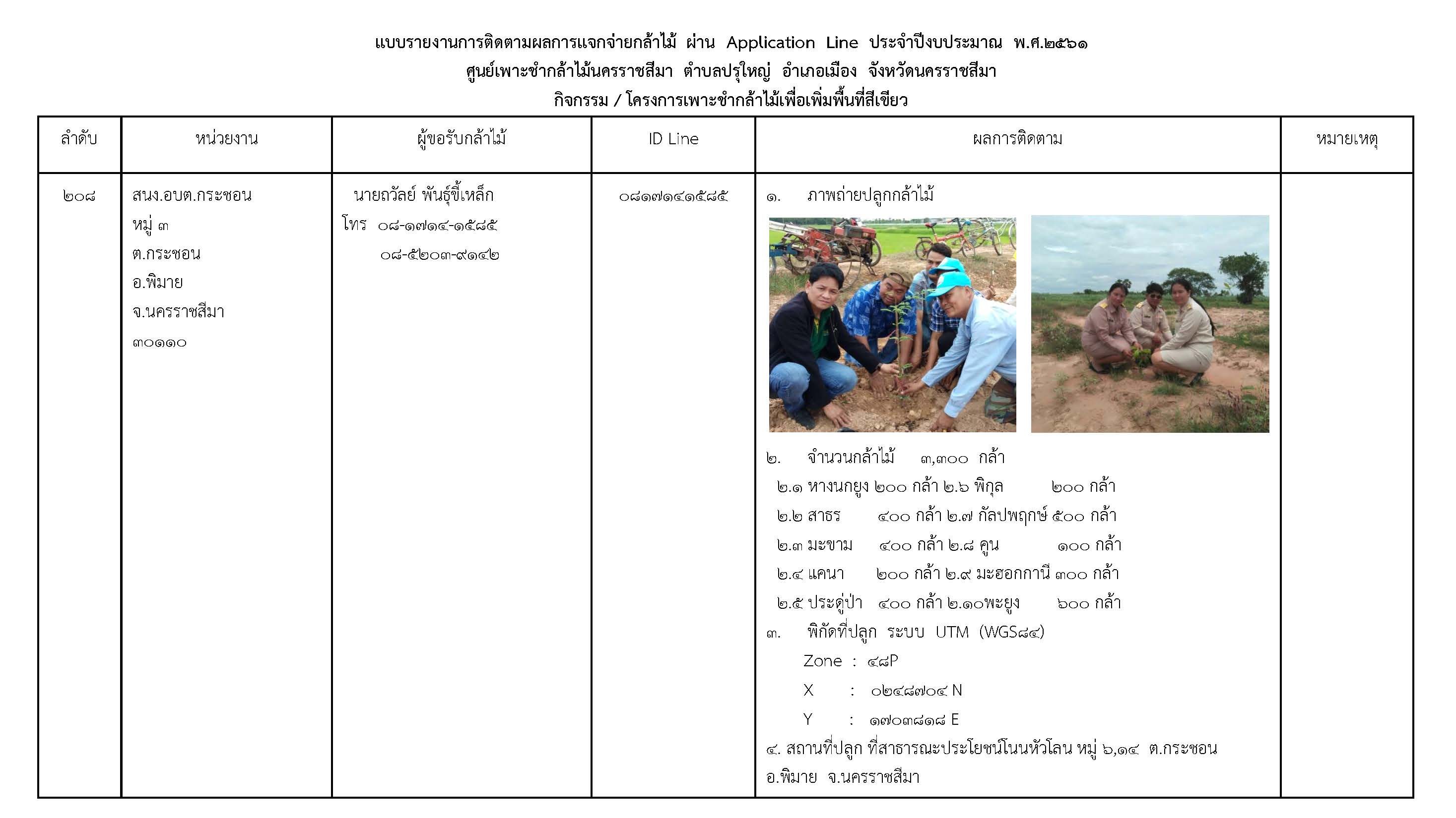 แปลงปลูกต้นไม้ ปีงบประมาณ พ.ศ.2561 – ศูนย์เพาะชำกล้าไม้นครราชสีมา แปลงที่ 208