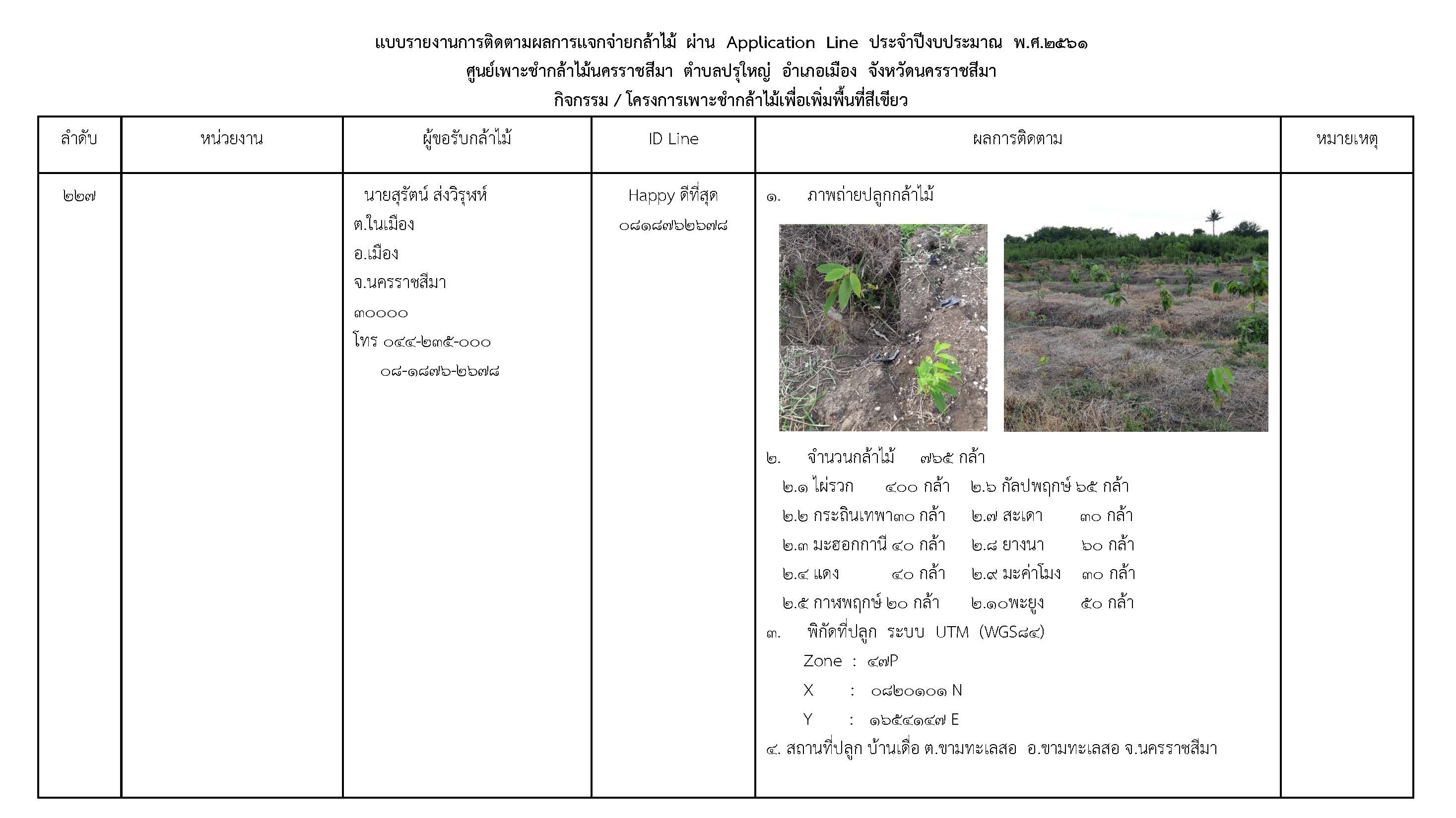 แปลงปลูกต้นไม้ ปีงบประมาณ พ.ศ.2561 – ศูนย์เพาะชำกล้าไม้นครราชสีมา แปลงที่ 227
