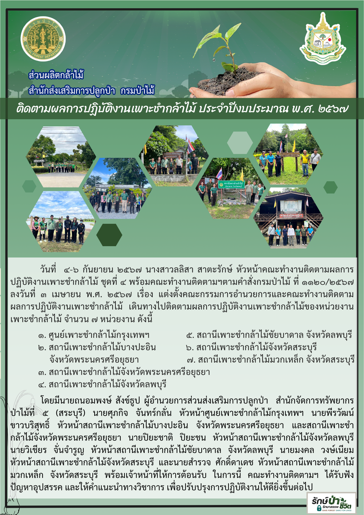 ติดตามผลการปฏิบัติงานเพาะชำกล้าไม้ทัองที่จังหวัดปทุมธานี พระนครศรีอยุธยา ลพบุรี และสระบุรี ระหว่างวันที่ ๔-๖ กันยายน ๒๕๖๗9 กันยายน 2024 by nursery 155717_0155718_0155719_0155720_0155721_0155722_0155723_0155724_0