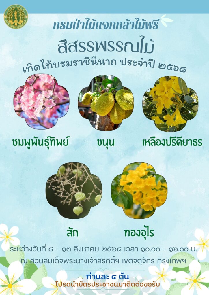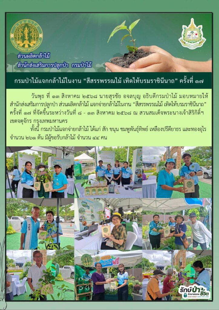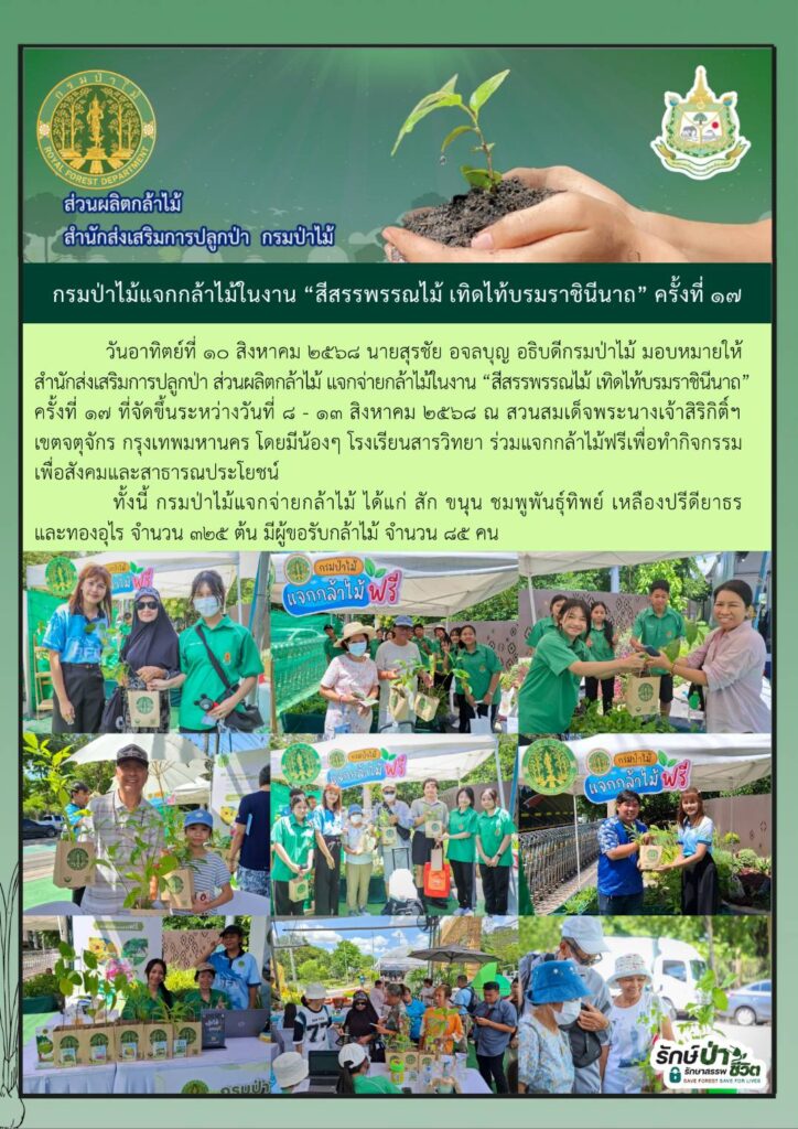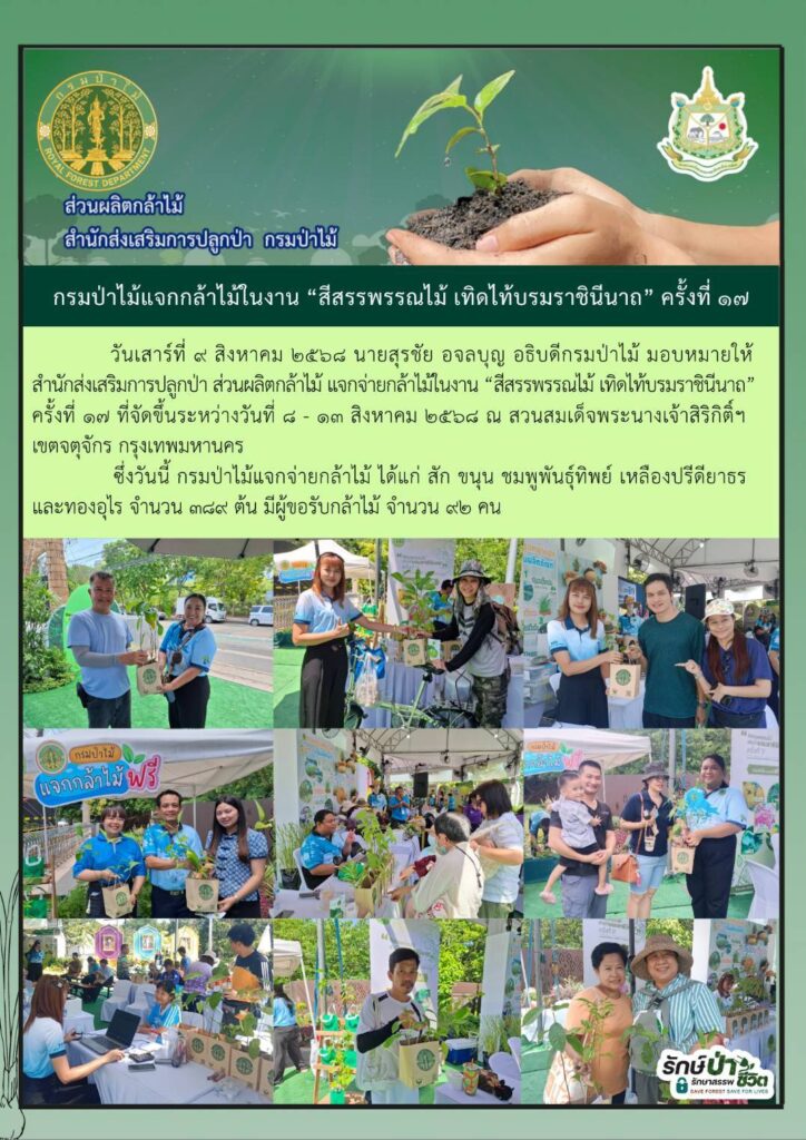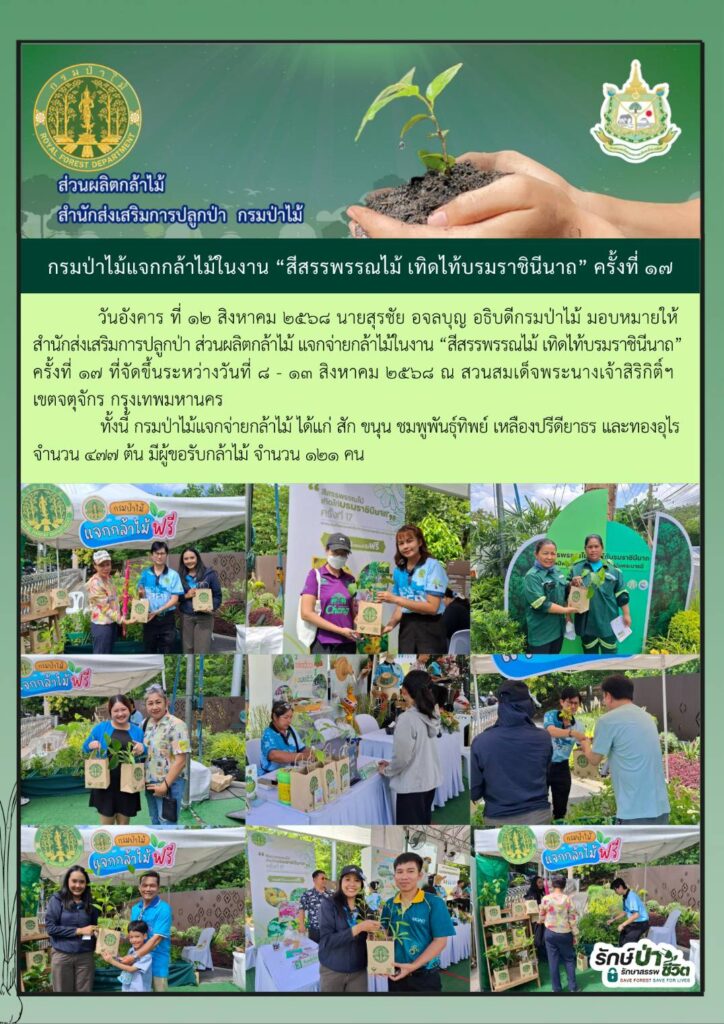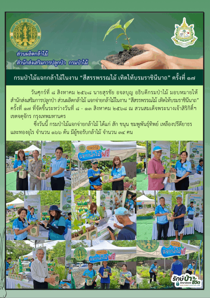 กรมป่าไม้ร่วมแจกกล้าไม้ในงานสีสรรพรรณไม้ เทิดไท้บรมราชินีนาถ ครั้งที่ ๑๗ ระหว่างวันที่ ๘-๑๓ สิงหาคม ๒๕๖๘ ณ สวนสมเด็จพระนางเจ้าสิริกิติ์ฯ เขตจตุจักร กรุงเทพฯ9 สิงหาคม 2025 by nursery