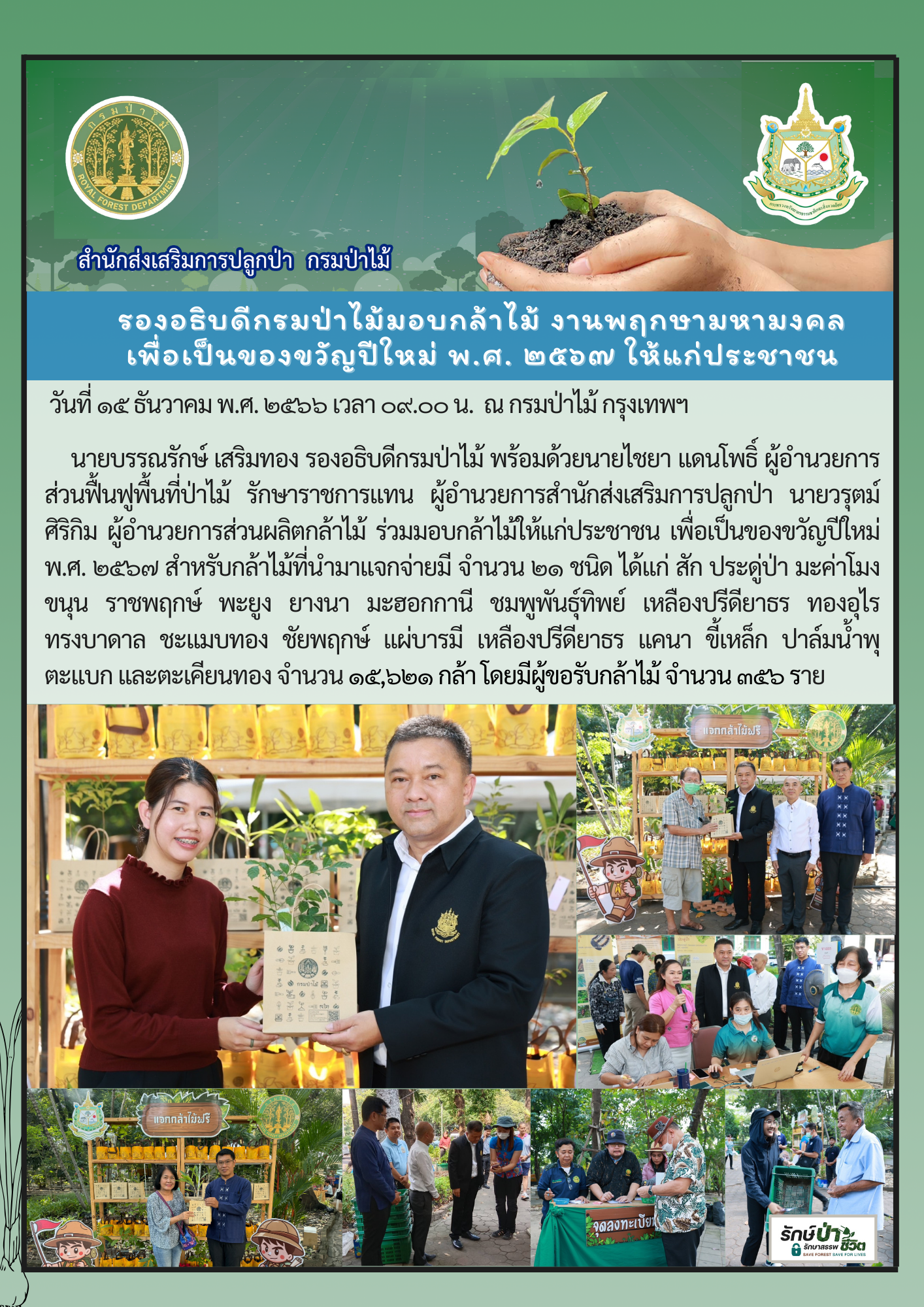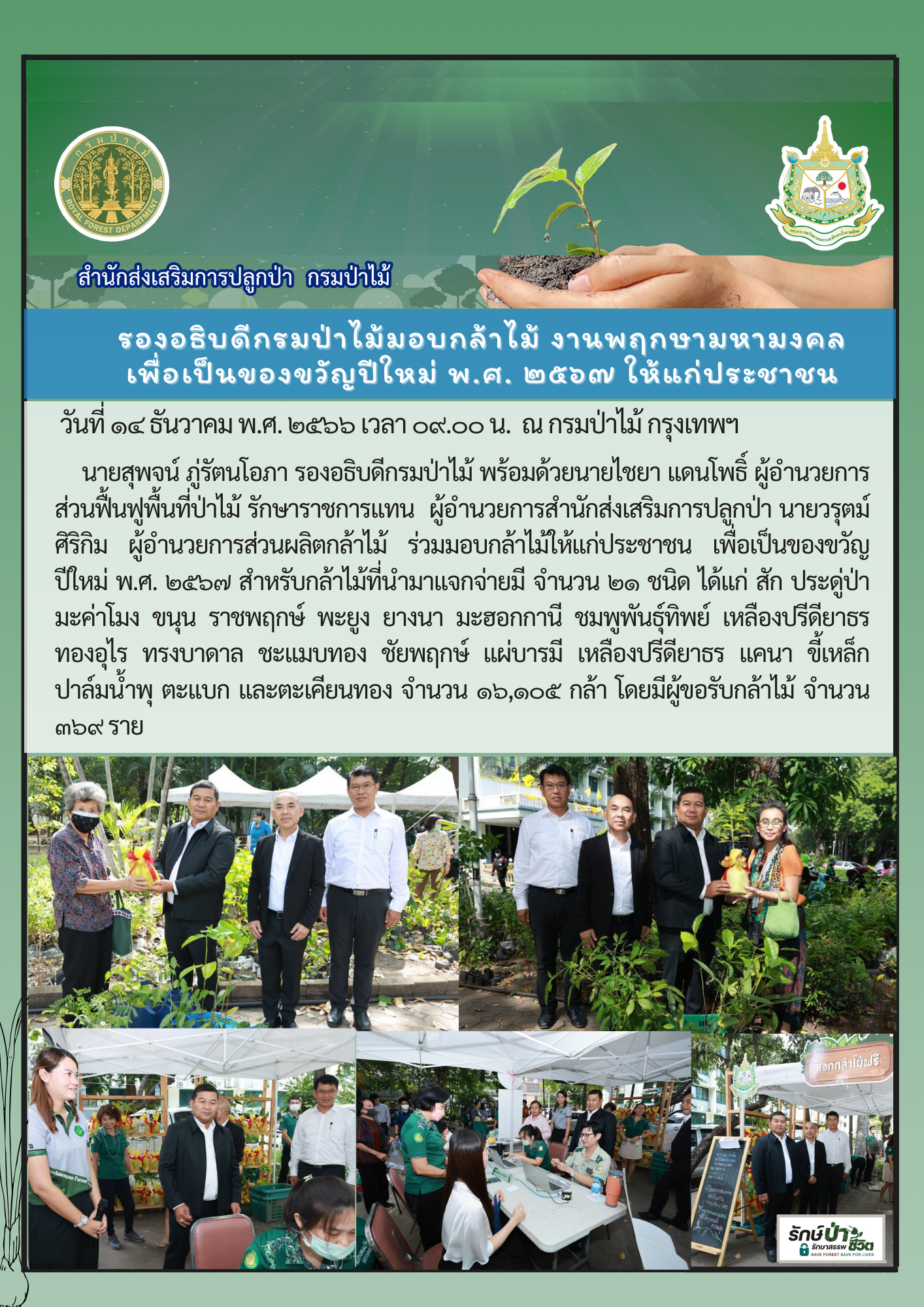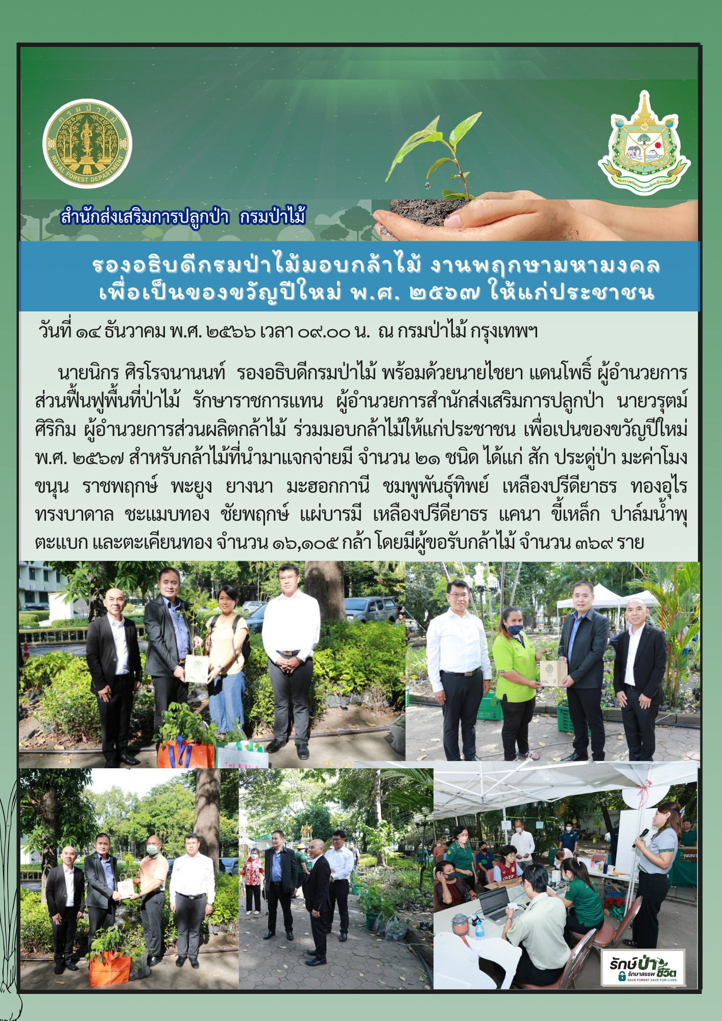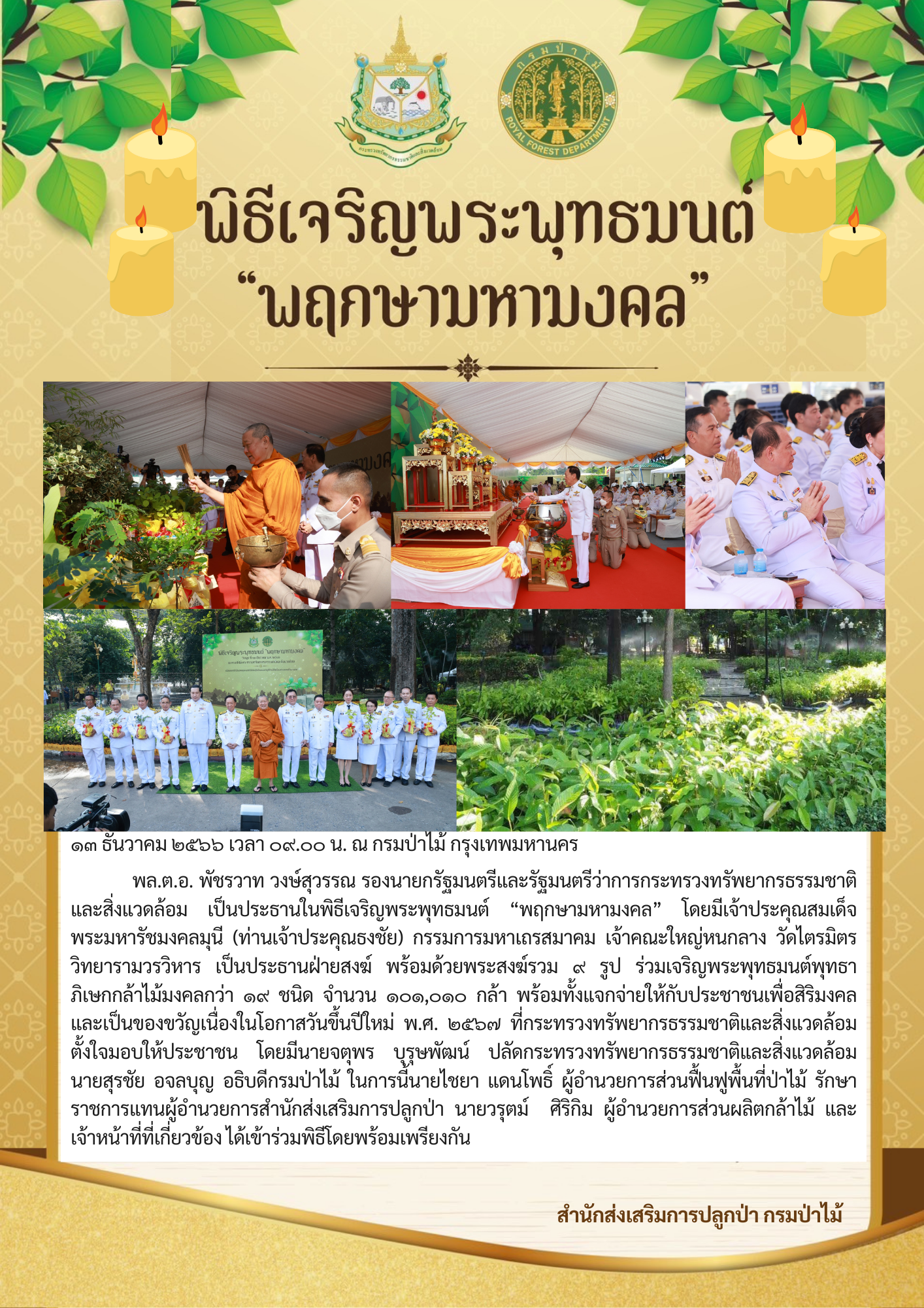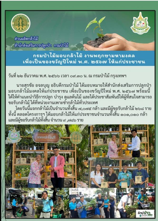พิธีเจริญพระพุทธมนต์ “พฤกษามหามงคล” และมอบกล้าไม้มงคลเป็นของขวัญปีใหม่ พ.ศ. 2567 ให้ประชาชน ณ กรมป่าไม้