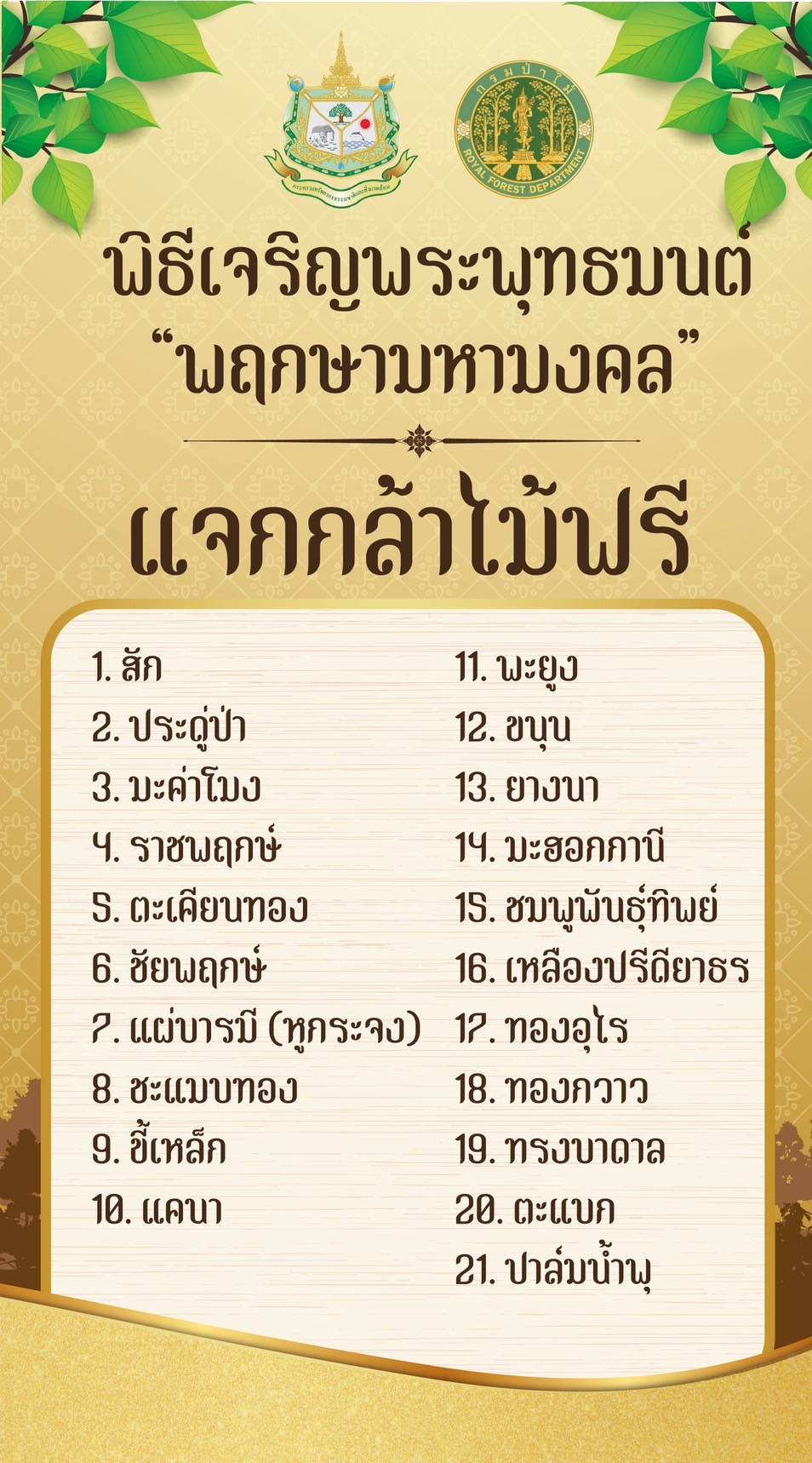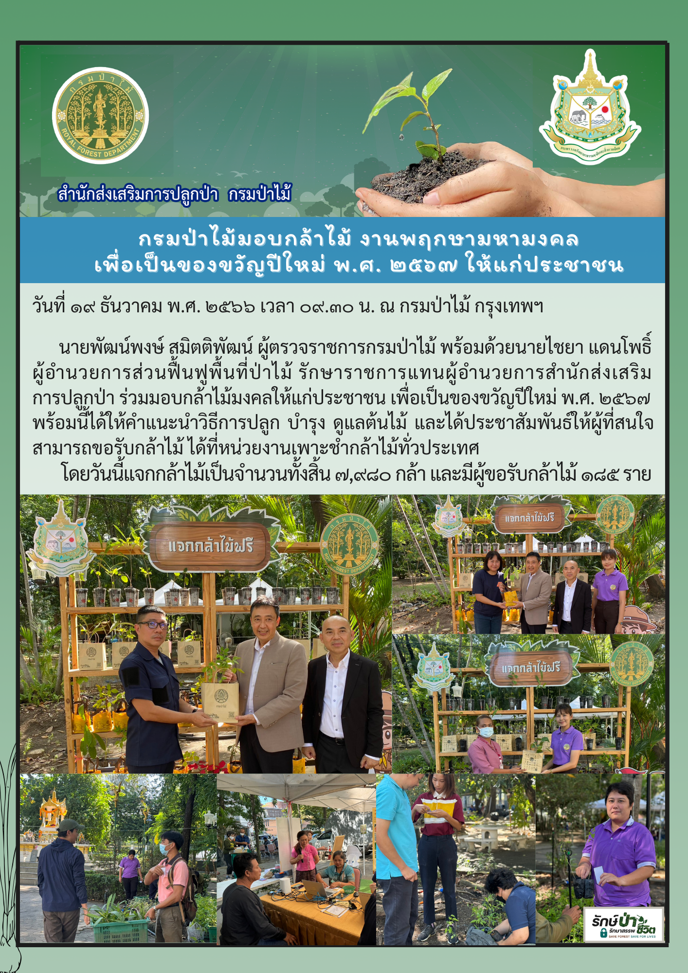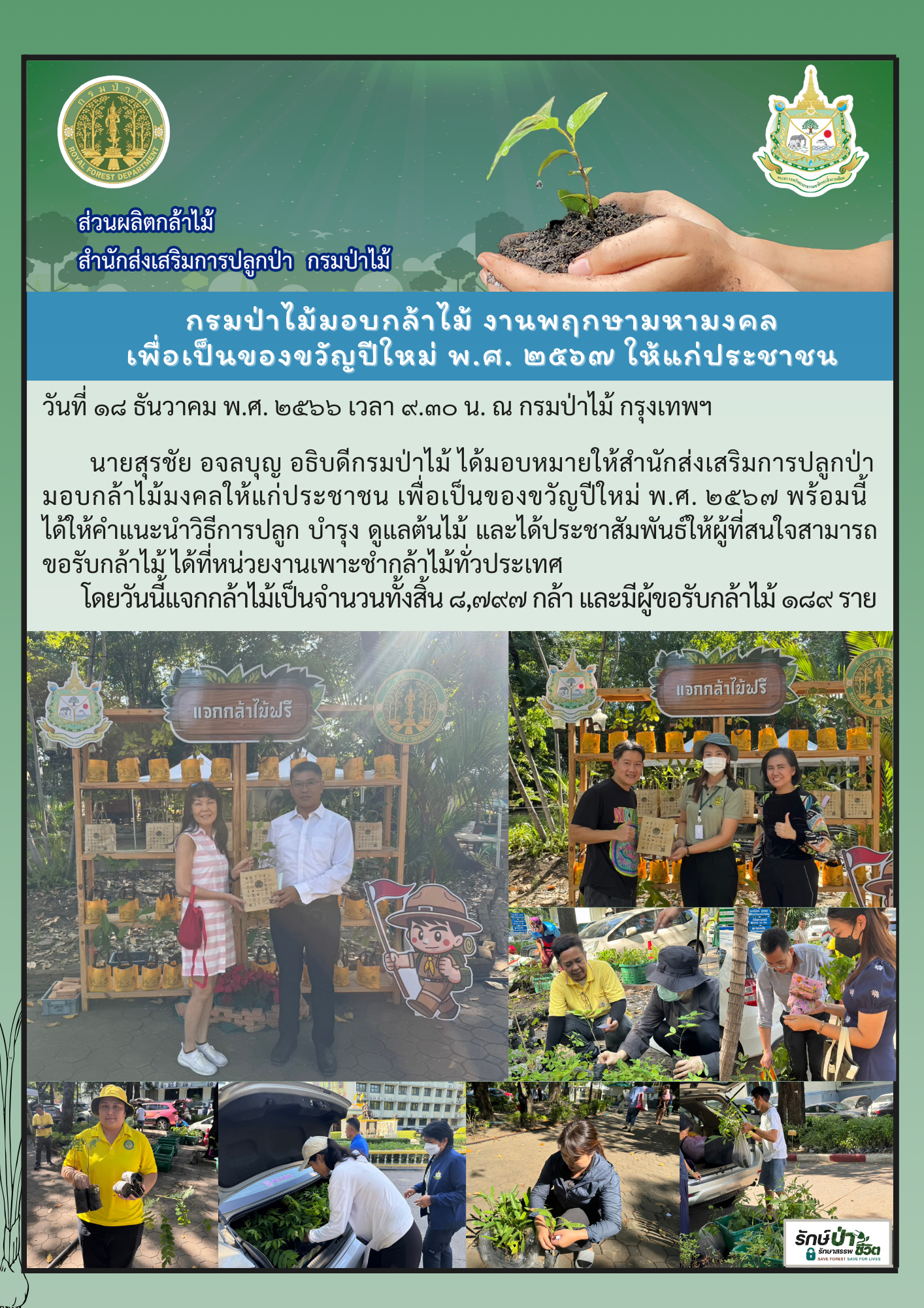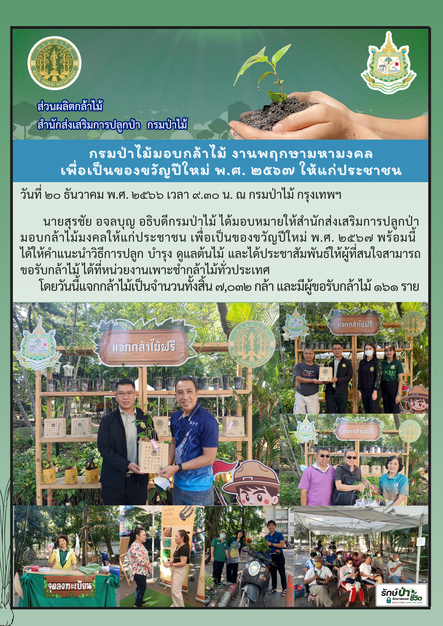 พิธีเจริญพระพุทธมนต์ “พฤกษามหามงคล” และมอบกล้าไม้มงคลเป็นของขวัญปีใหม่ พ.ศ. 2567 ให้ประชาชน ณ กรมป่าไม้