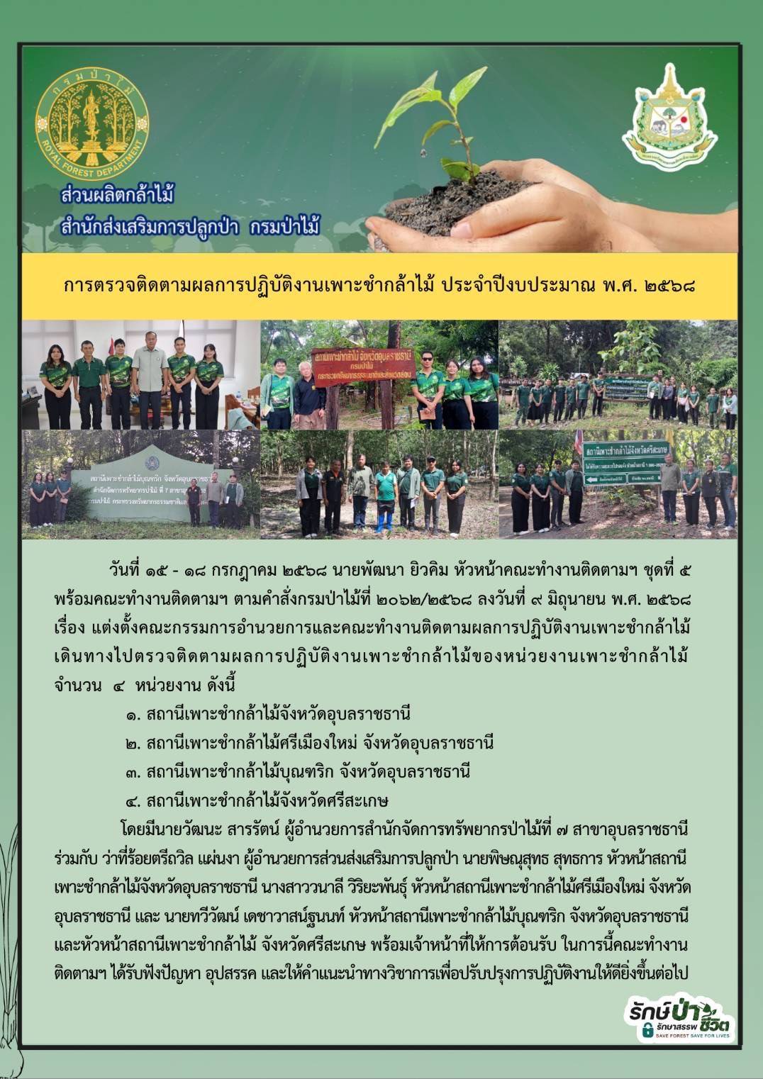 ตรวจติดตามผลการปฏิบัติงานเพาะชำกล้าไม้ทัองที่จังหวัด อุบลราชธานี และศรีสะเกษ ระหว่างวันที่ ๑๕-๑๘ กรกฎาคม ๒๕๖๘19 กรกฎาคม 2025 by nursery S__7741486_0S__7741488_0S__7741489_0S__7741490_0S__7741491_0
