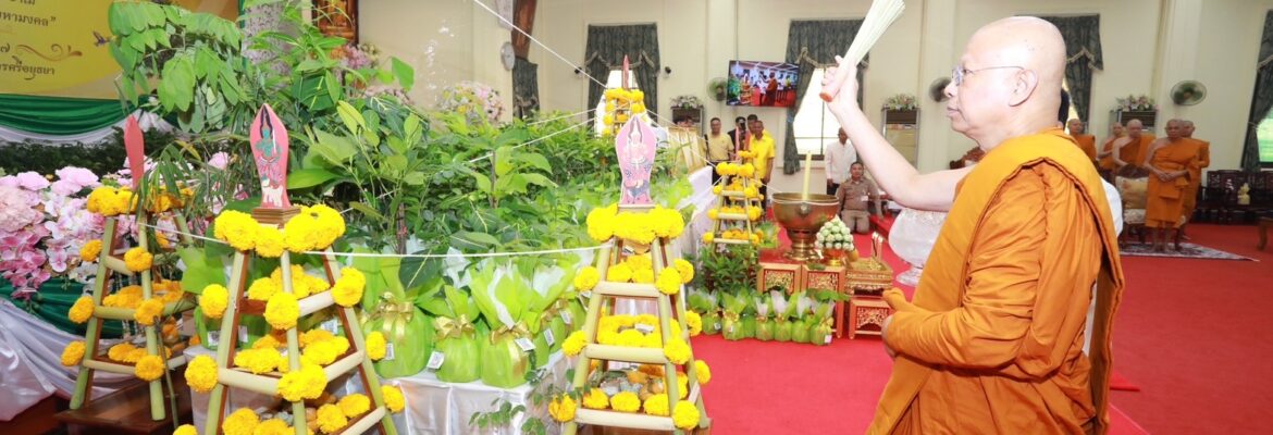วันจันทร์ที่ ๑๖ ธันวาคม ๒๕๖๗ เวลา ๑๒.๓๐ น. ดร.เฉลิมชัย ศรีอ่อน รัฐมนตรีว่าการกระทรวงทรัพยากรรรมชาติและสิ่งแวดล้อม เป็นประธานฝ่ายฆราวาสในพิธีเจริญพระพุทธมนต์ “พฤกษามหามงคล” โดยมีสมเด็จพระมหาวีรวงศ์ เลขานุการสมเด็จพระอริยวงศาคตญาณ สมเด็จพระสังฆราช สกลมหาสังฆปรินายก เป็นประธานฝ่ายสงฆ์ พร้อมด้วยพระสงฆ์รวม ๒๓ รูป ร่วมเจริญ พระพุทธมนต์พุทธาภิเษกกล้าไม้มงคลกว่า ๑๒ ชนิด จำนวน ๗๒,๐๐๐ กล้า พร้อมทั้งแจกจ่ายให้กับประชาชนเพื่อสิริมงคลและเป็นของขวัญเนื่องในโอกาสวันขึ้นปีใหม่ พ.ศ.๒๕๖๘ ที่กระทรวงทรัพยากร ธรรมชาติและสิ่งแวดล้อมตั้งใจมอบให้ประชาชน โดยมีนายจตุพร บุรุษพัฒน์ ปลัดกระทรวงทรัพยากรธรรมชาติและสิ่งแวดล้อม ผู้บริหาร ทส. นายสุรชัย อจลบุญ อธิบดีกรมป่าไม้ นายอนันต์ ปิ่นน้อย ผู้อำนวยการสำนักส่งเสริมการปลูกป่า นายวรุตม์ ศิริกิม ผู้อำนวยการส่วนผลิตกล้าไม้ นายมงคล ลิ่ววิริยกุล ผู้อำนวยการส่วนฟื้นฟูพื้นที่ป่าไม้ นายชาญวิทย์ ประชุมรักษ์ ผู้อำนวยการส่วนอำนวยการ สำนักส่งเสริมการปลูกป่า และเจ้าหน้าที่เข้าร่วมพิธี ณ วัดพนัญเชิงวรวิหาร จังหวัดพระนครศรีอยุธยา