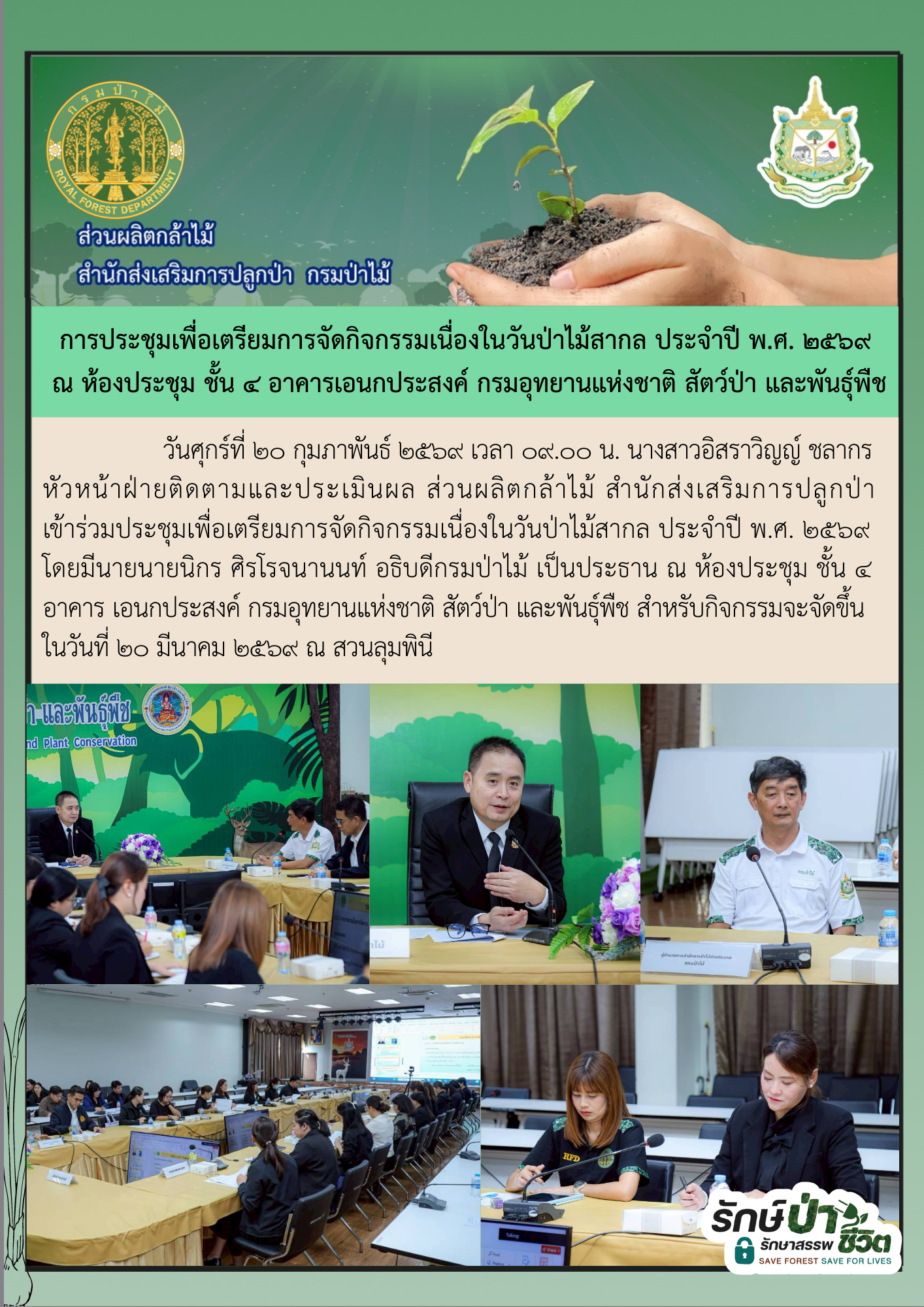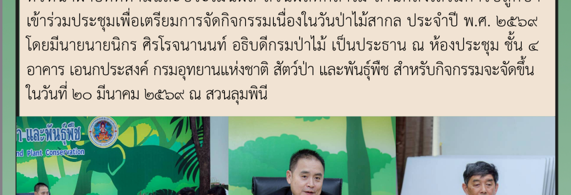 กรมป่าไม้เข้าร่วมประชุมเพื่อเตรียมการจัดกิจกรรมเนื่องในวันป่าไม้สากล ประจำปี พ.ศ. ๒๕๖๙ ณ กรมอุทยานแห่งชาติ สัตว์ป่า และพันธุ์พืช