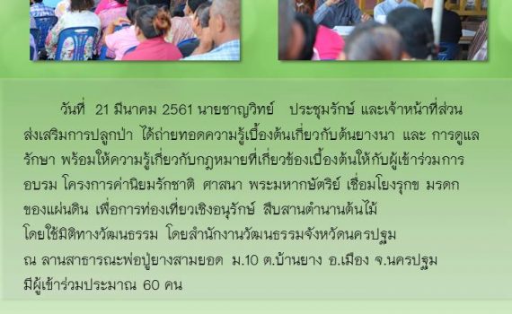 8 มีนาคม 2561 โครงการพัฒนาป่าไม้ทุ่งกุลาร้องไห้ 2  […]