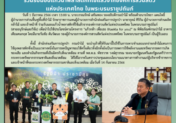 กรมป่าไม้ร่วมรับมอบแก้วน้ำพลาสติกที่ใช้แล้วจากองค์การสวนสัตว์แห่งประเทศไทย ในพระบรมราชูปถัมภ์4 ธันวาคม 2023 by nursery