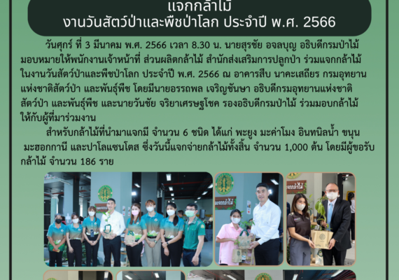 กรมป่าไม้ร่วมแจกกล้าไม้ในงานวันสัตว์ป่าและพืชป่าโลก ประจำปี พ.ศ.2566 ณ อาคารสืบ นาคะเสถียร กรมอุทยานแห่งชาติ สัตว์ป่า และพันธุ์พืช3 มีนาคม 2023 by nursery