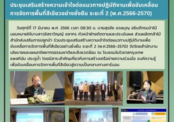 กรมป่าไม้เข้าร่วมประชุมเสริมสร้างความเข้าใจต่อแนวทางปฏิบัติงานเพื่อขับเคลื่อนการจัดการพื้นที่สีเขียวอย่างยั่งยืน ระยะที่ 2 (พ.ศ.2566-2570) ณ โรงแรมโนโวเทล กรุงเทพ แพลทินัม20 มีนาคม 2023 by nursery
