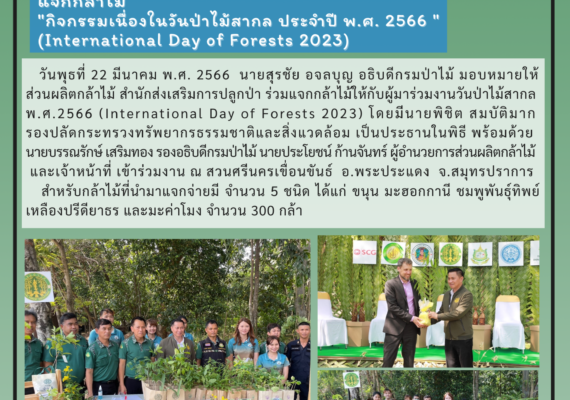 กรมป่าไม้ร่วมแจกกล้าไม้ในงานเสวนาด้านป่าไม้ วันป่าไม้สากล ประจำปี พ.ศ.2566 ณ สวนศรีนครเขื่อนขันธ์ จ.สมุทรปราการ23 มีนาคม 2023 by nursery