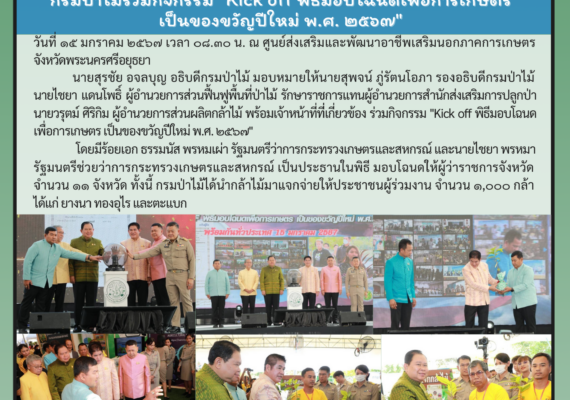 กรมป่าไม้ร่วมแจกกล้าไม้ ในกิจกรรม “Kick off พิธีมอบโฉนดเพื่อการเกษตรเป็นของขวัญปีใหม่ พ.ศ.2567” ณ ศูนย์ส่งเสริมและพัฒนาอาชีพเสริมนอกภาคการเกษตร จ.พระนครศรีอยุธยา16 มกราคม 2024 by nursery